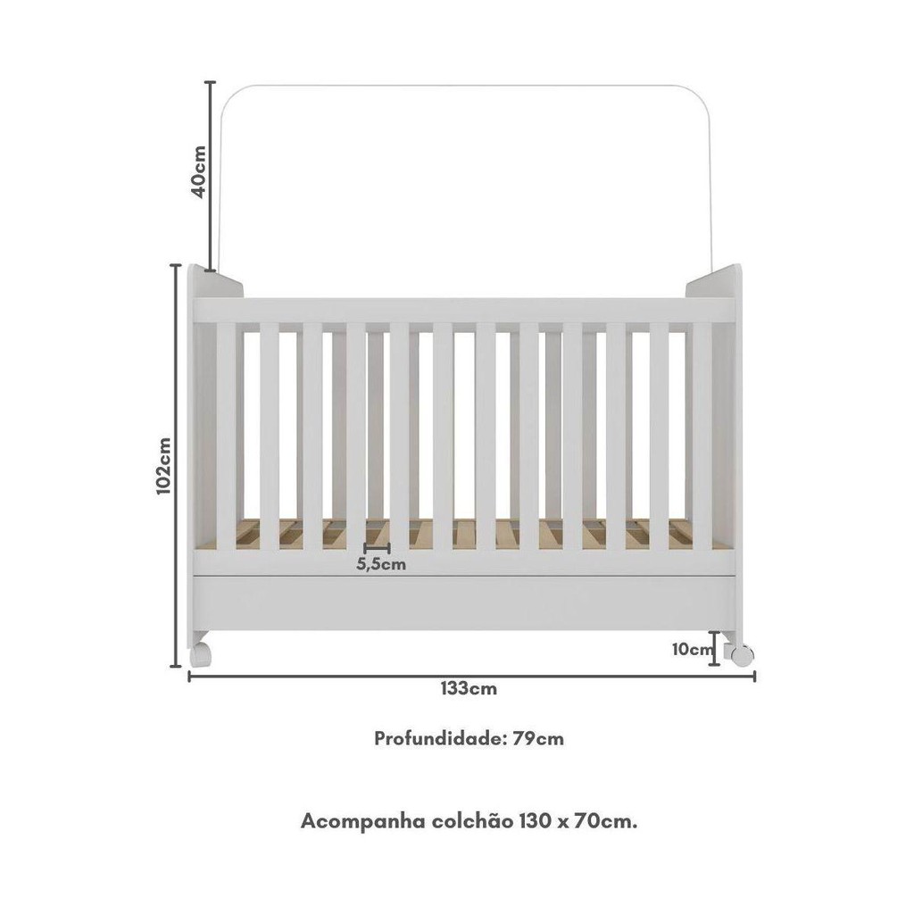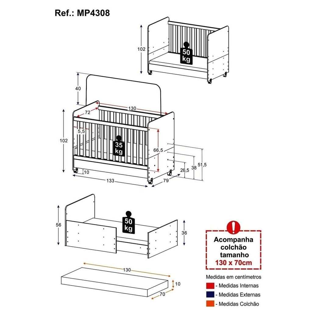 Berço Americano 3x1 com Colchão Incluso e Rodízios Pimpolho Multimóveis MP4308