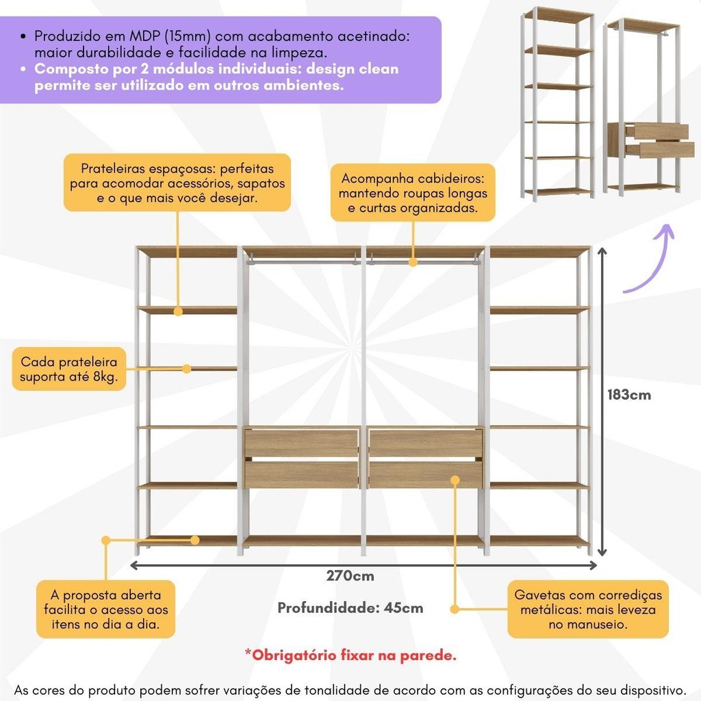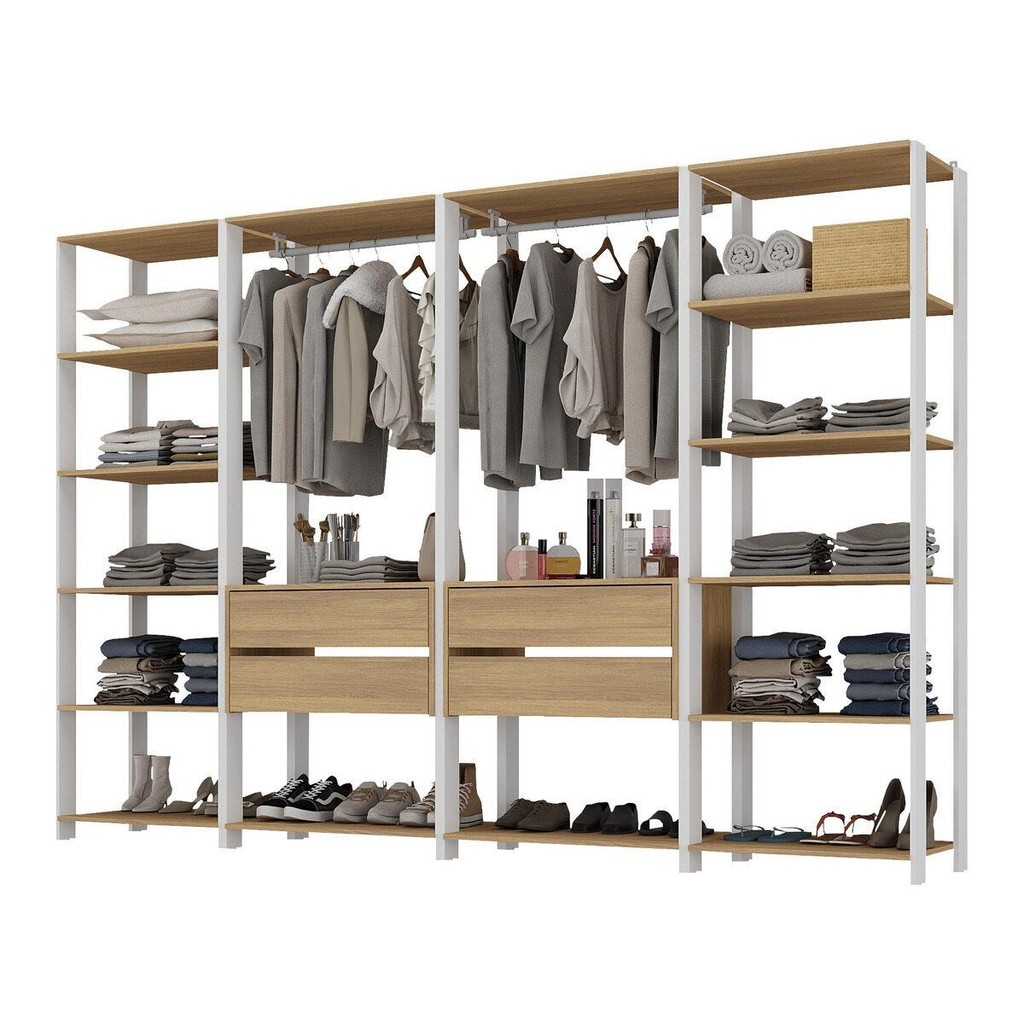 Guarda-Roupas Closet Modulado 270cm 4 Peças com 4 Gavetas e Cabideiros Multimóveis MP4321