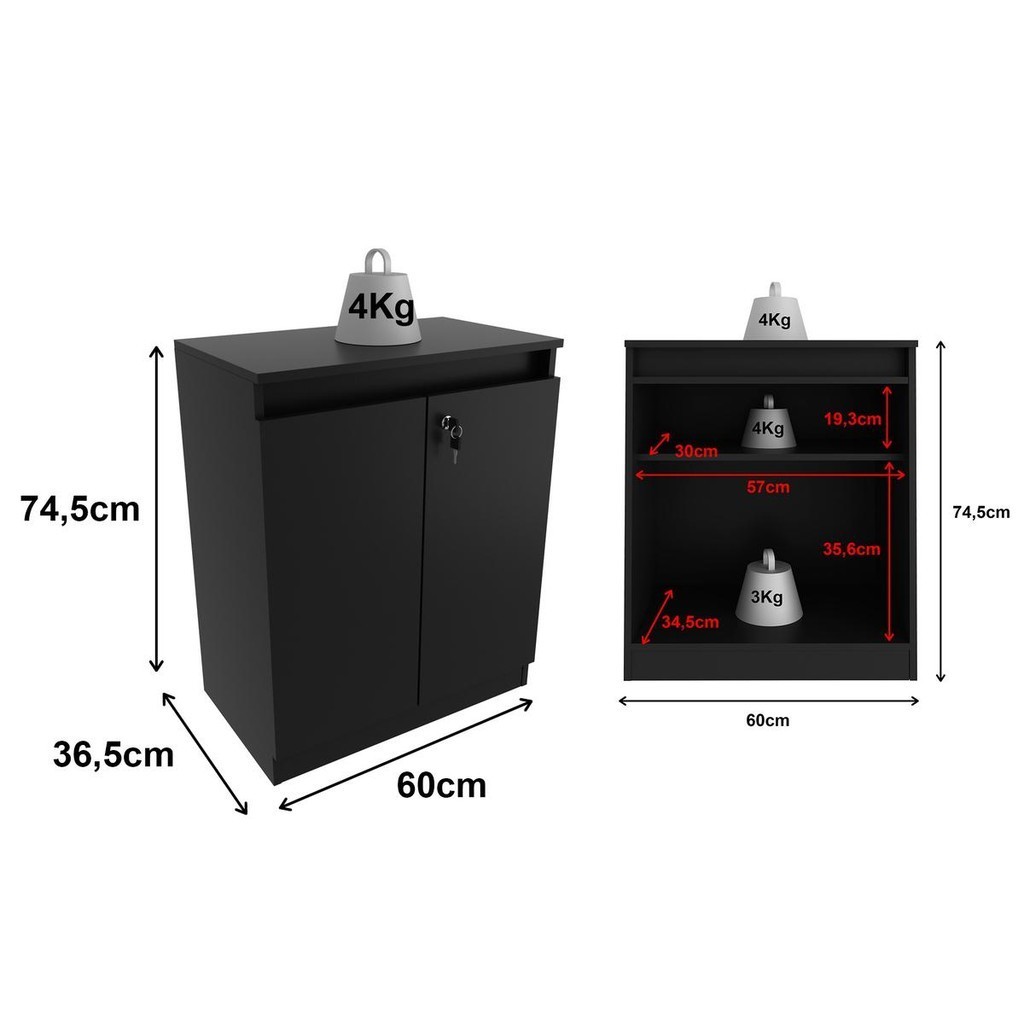 Balcão Escritório com Chave Multimóveis CR25046 Preto