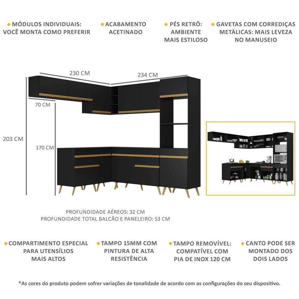 Armário de Cozinha Completa de Canto Veneza Multimóveis V2070