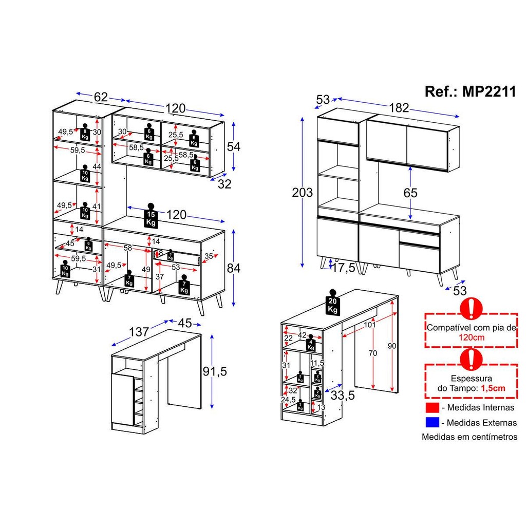 Cozinha Compacta com Bancada Americana/Mesa Veneza Multimóveis MP2211