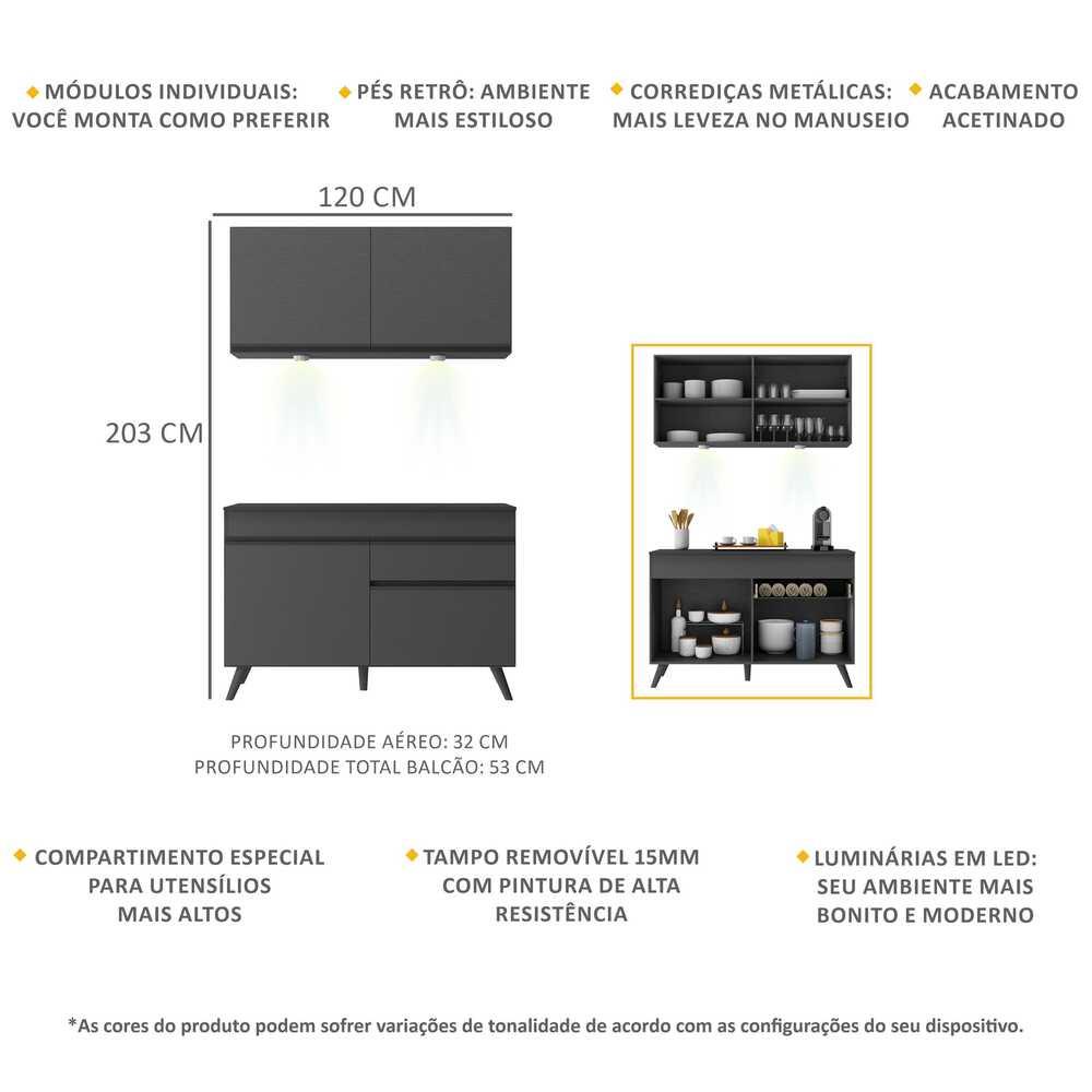 Armário de Cozinha Compacta 2 peças com Leds MP2012.895 Veneza Up Multimóveis Preto