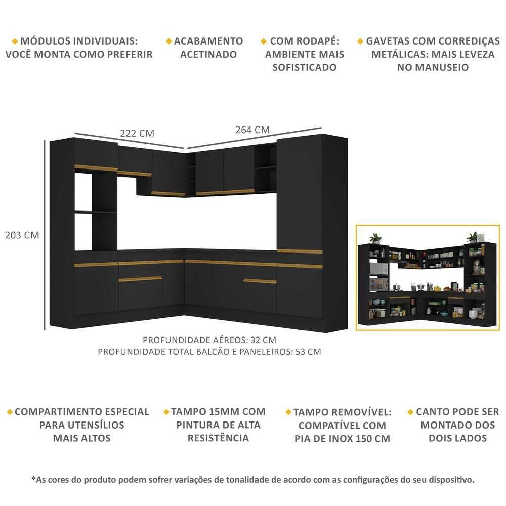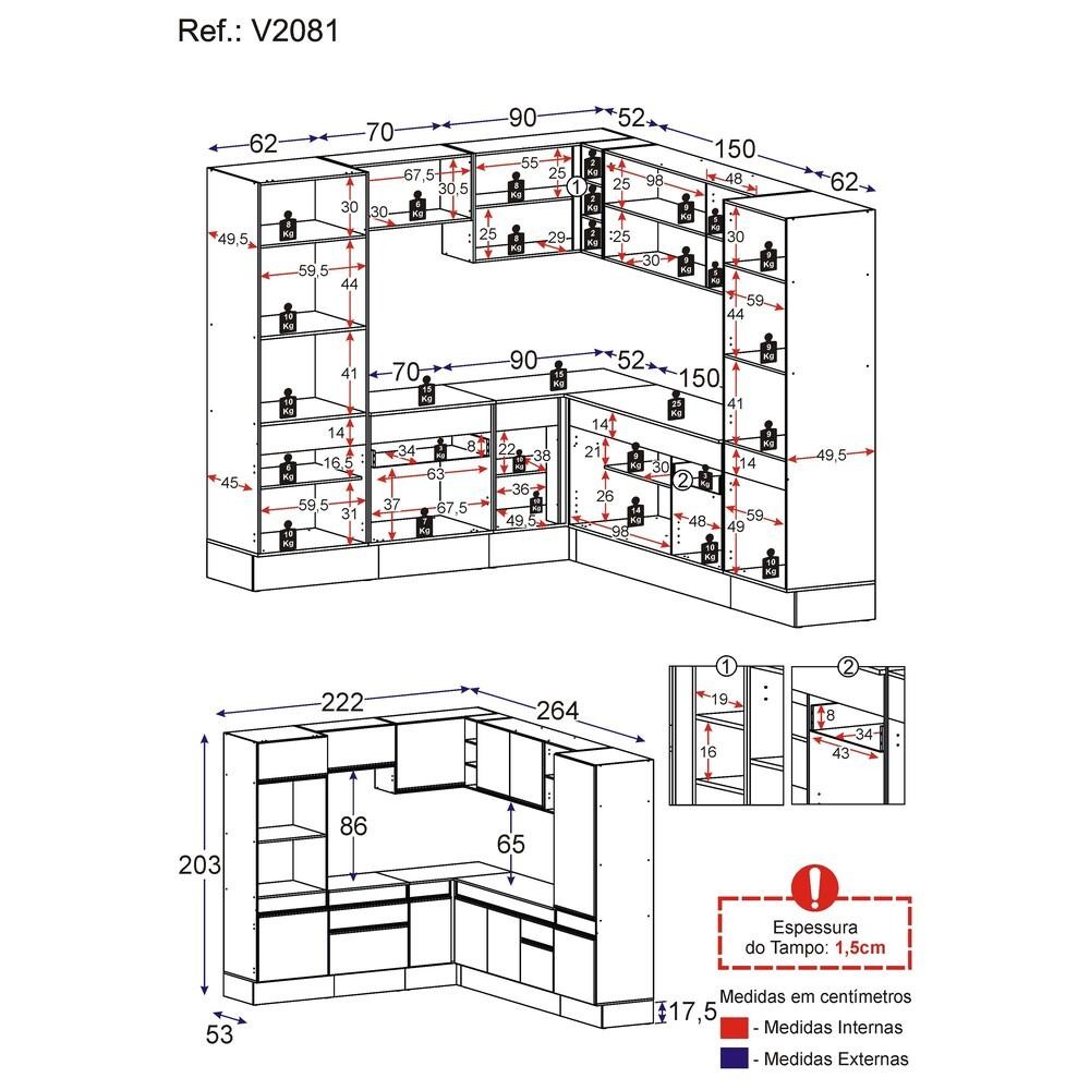 Armário de Cozinha Completa de Canto com Rodapé Veneza Multimóveis V2081