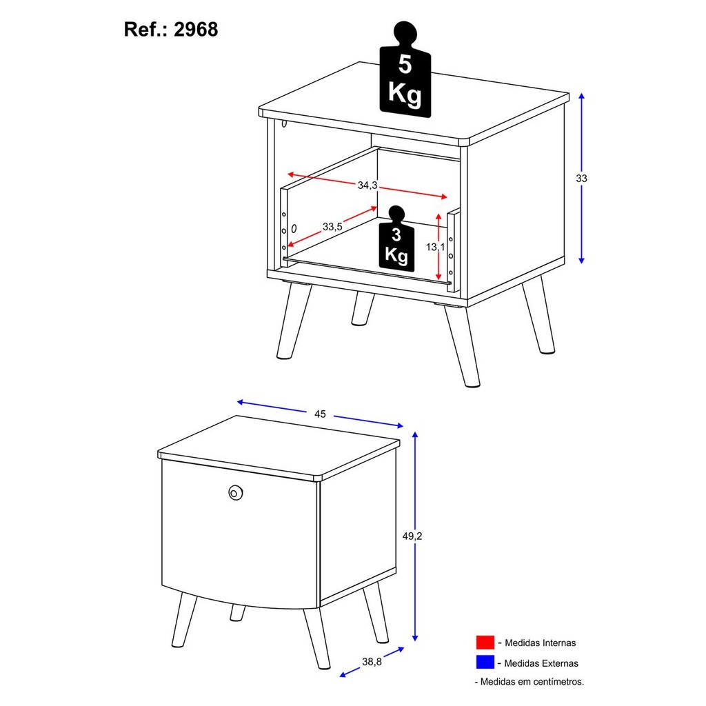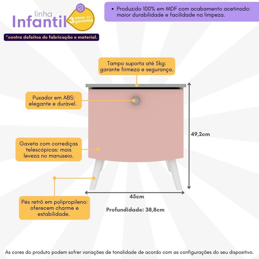 Mesa de Cabeceira 100% MDF com 1 gaveta Doçura Multimóveis Branco/Cinza/Rosa
