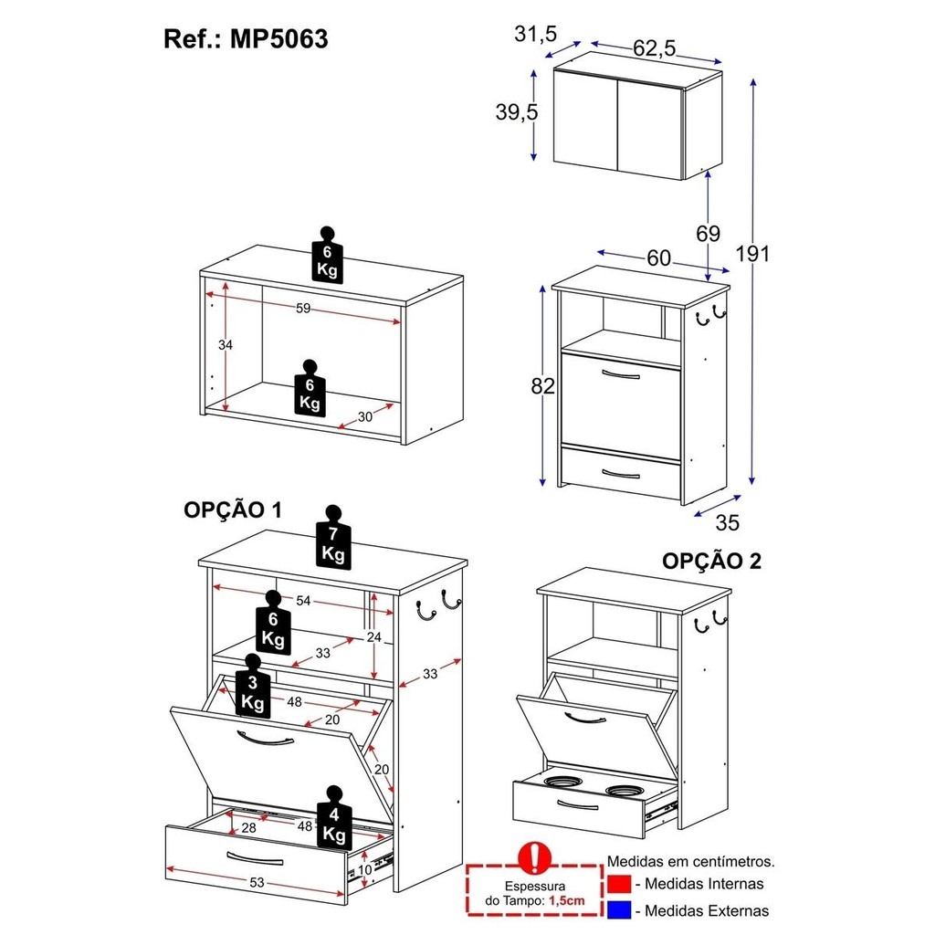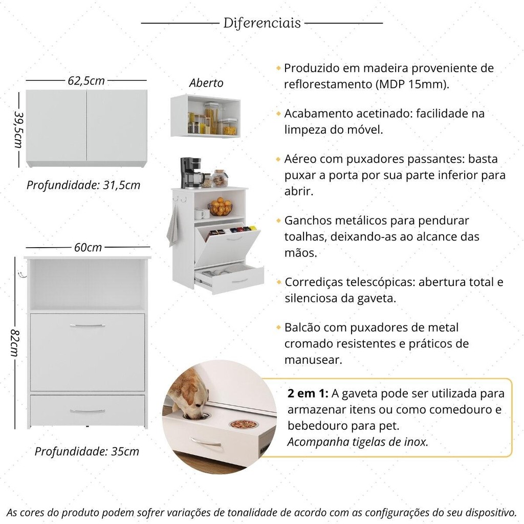Kit Armário de Cozinha Aéreo 62,5cm com Balcão Multiuso Multimóveis MP5063