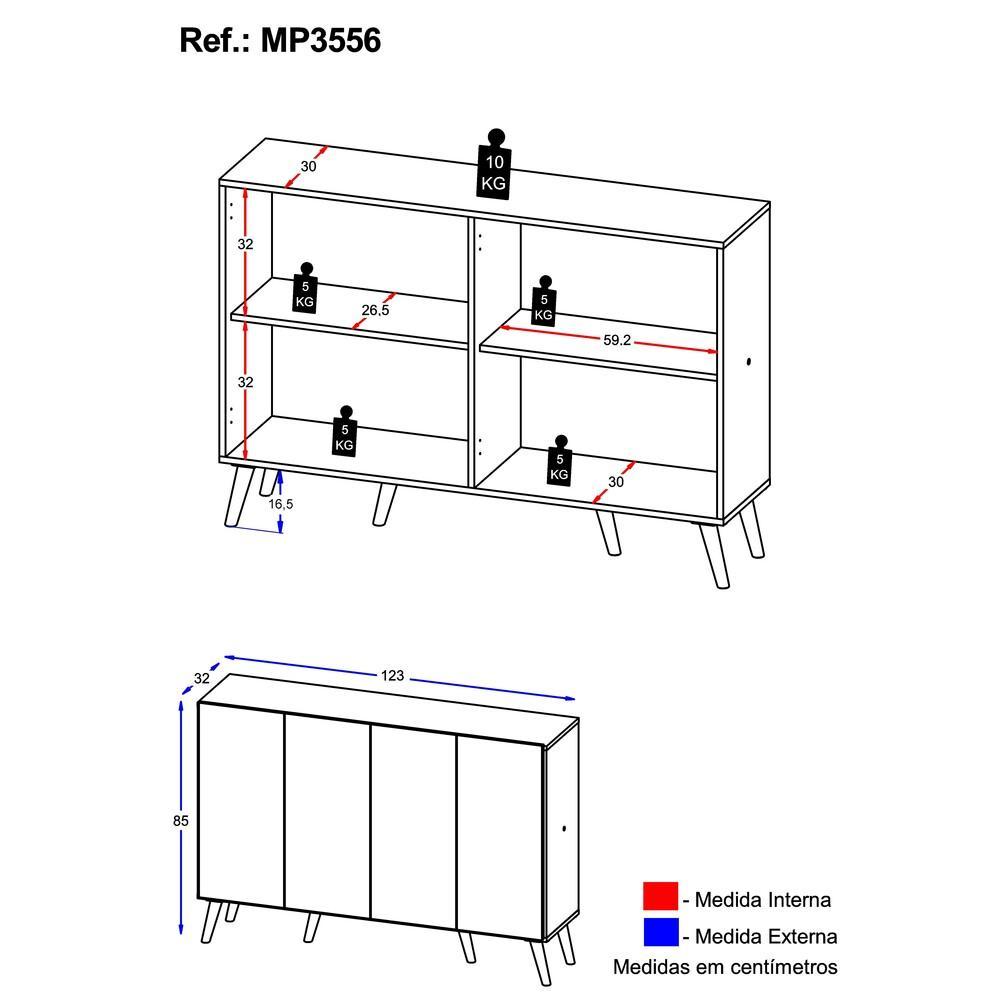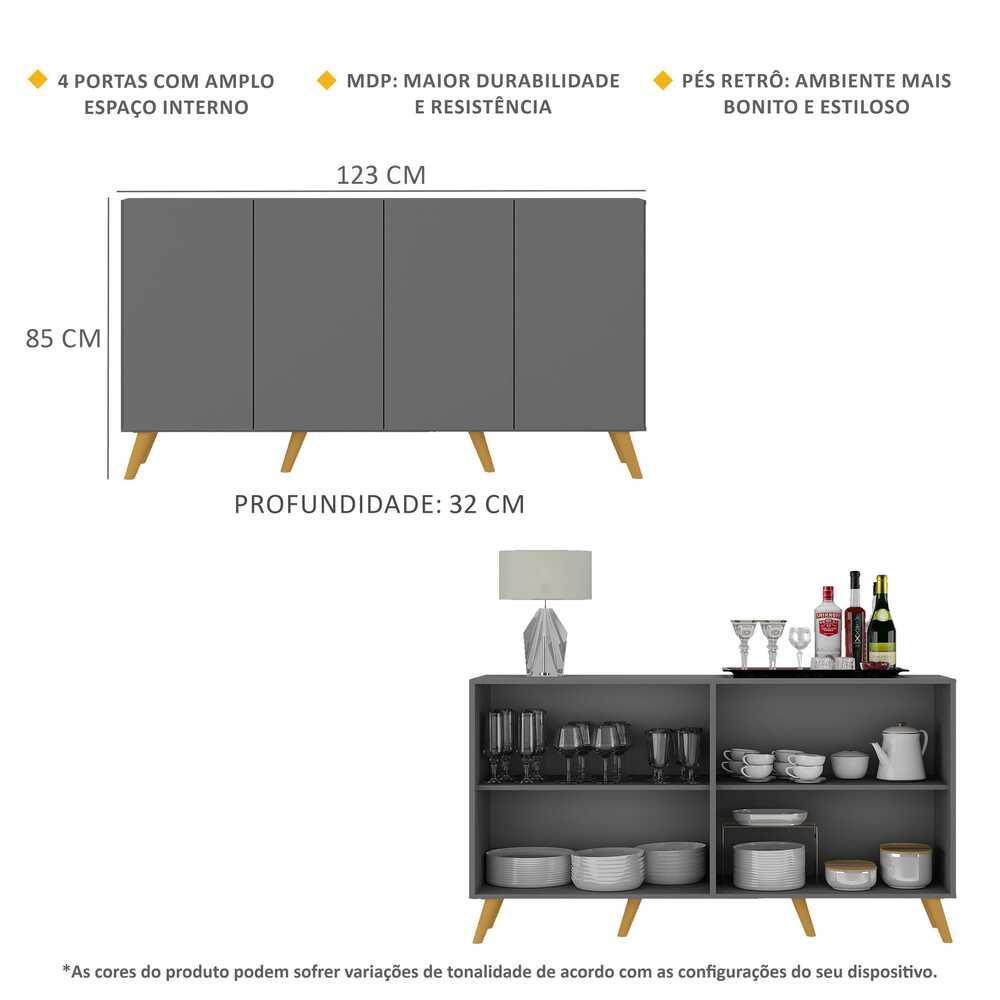 Aparador Buffet 4 Portas com Pés Retrô Veneza Multimóveis Grafite/Natural