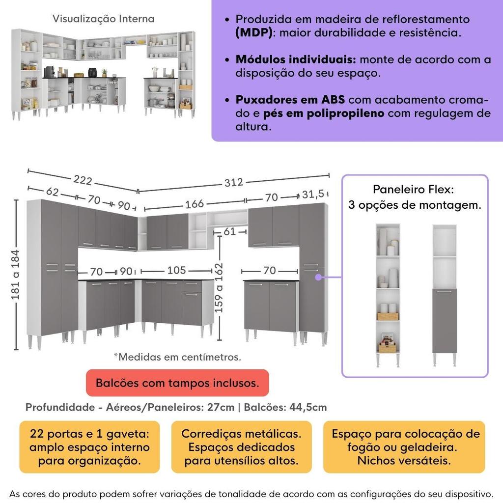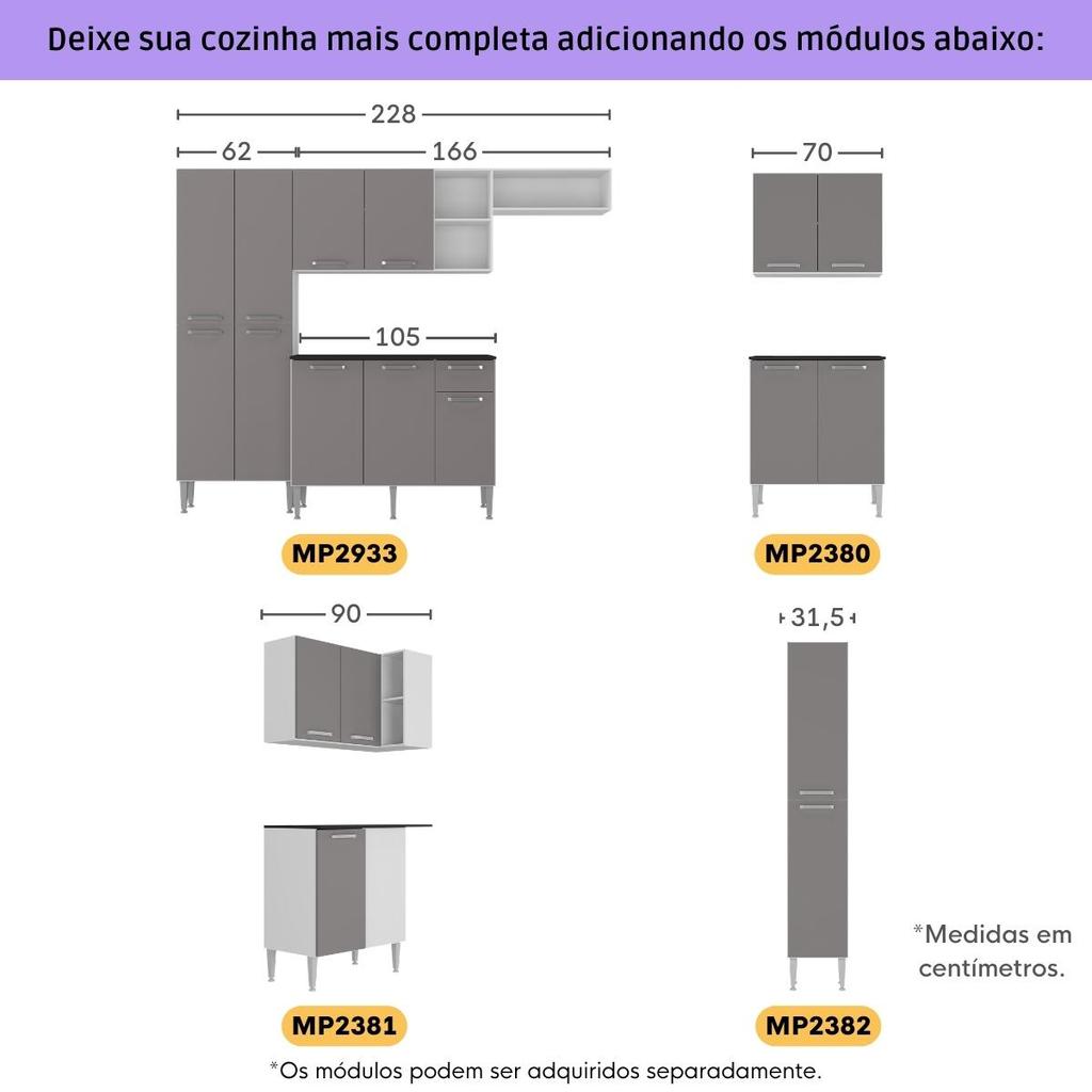 Armário Cozinha Modulada Completa de Canto 534cm Pequim Pop Multimóveis MP3771