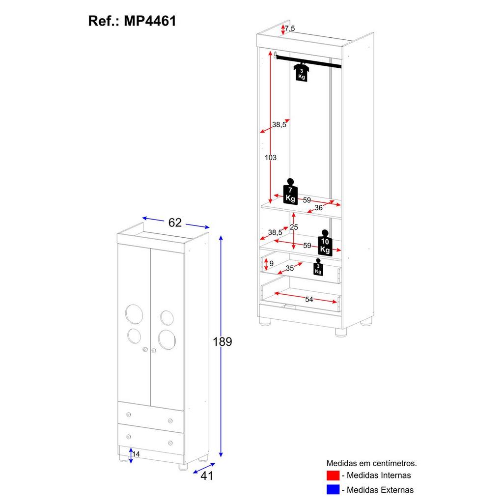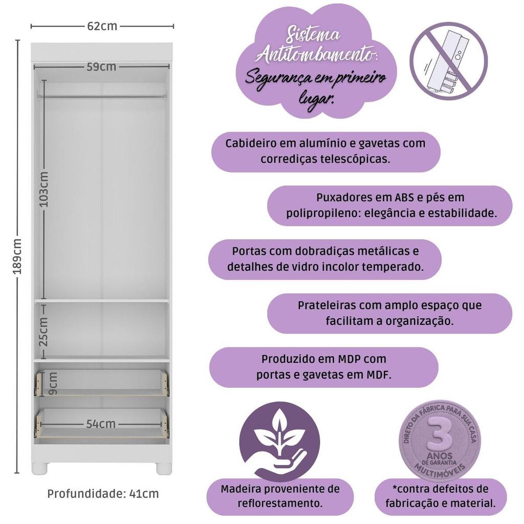 Guarda-roupa Infantil 62cm 2 Portas com Vidro e 2 Gavetas Bombom Multimóveis MP4461