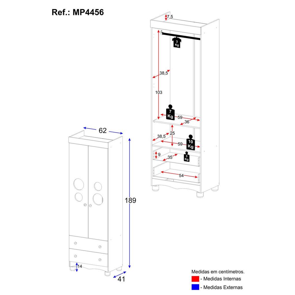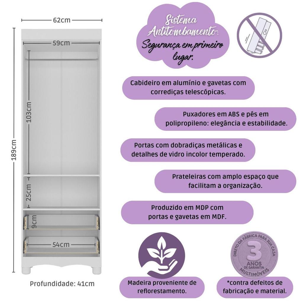 Guarda-roupa Infantil 62cm 2 Portas com Vidro e 2 Gavetas Suspiro Multimóveis MP4456