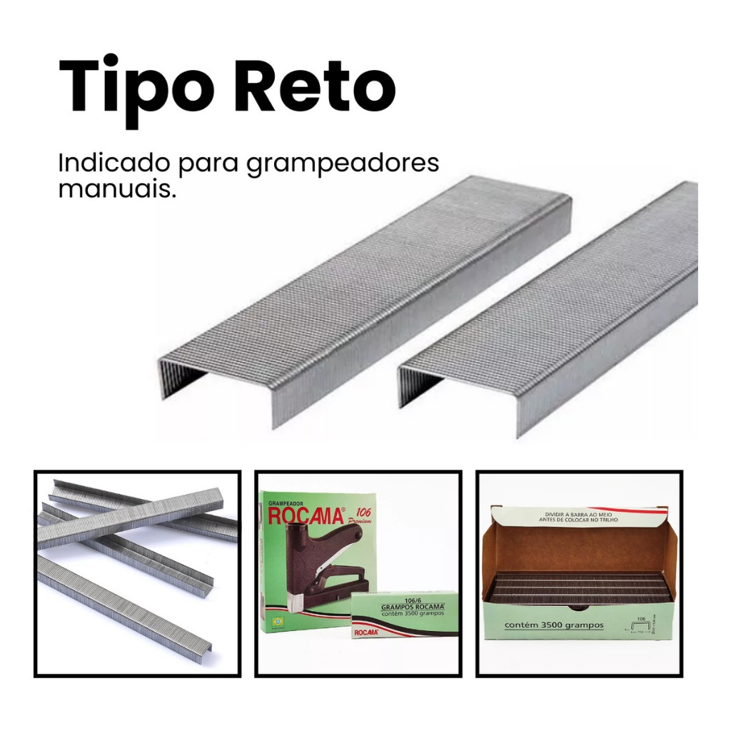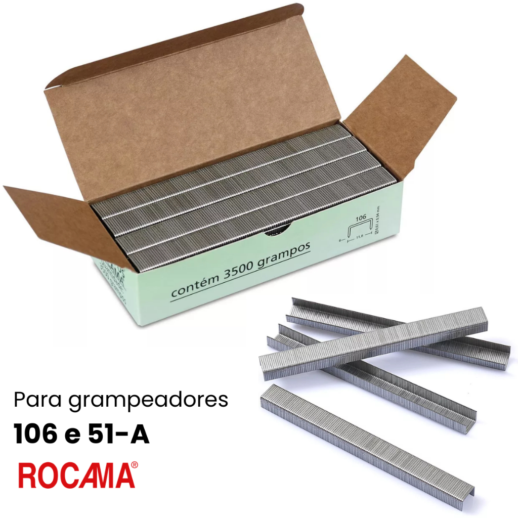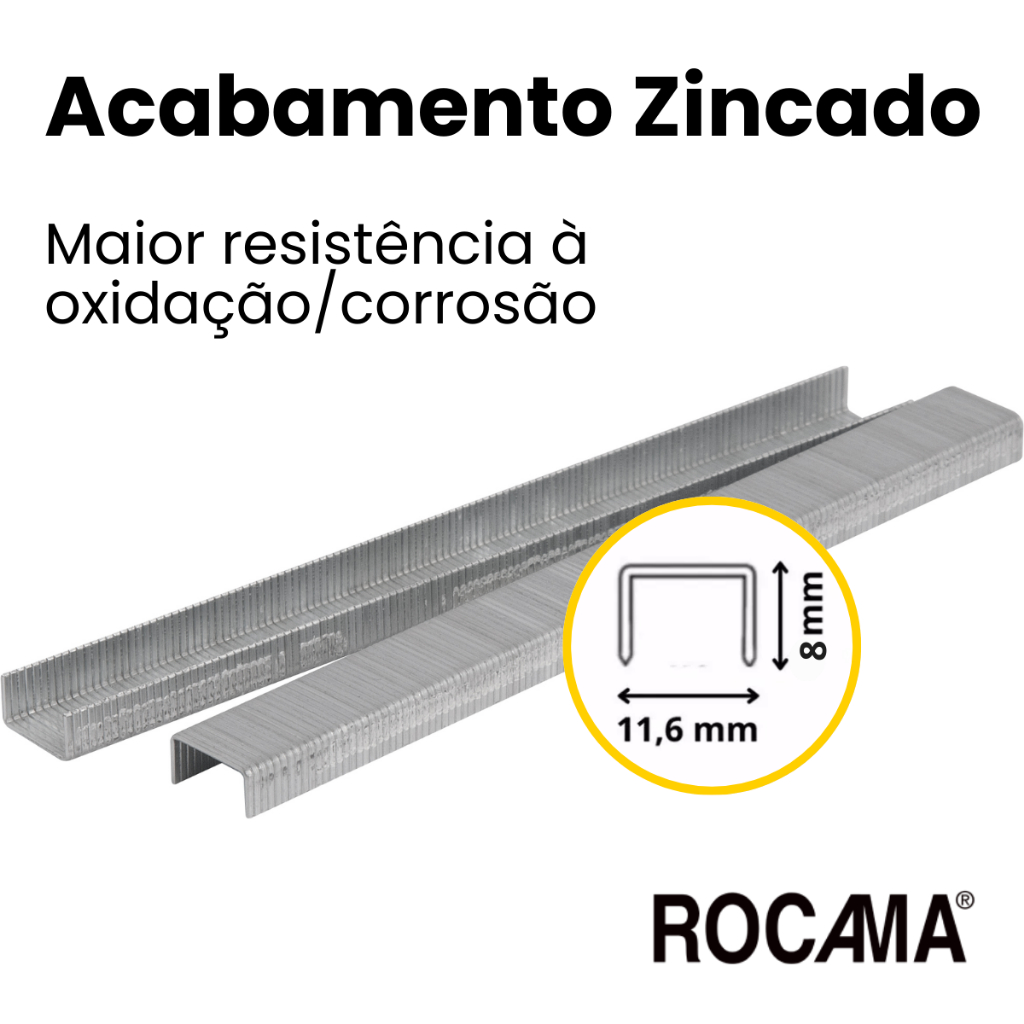 Grampo 6mm 106/6 Rocama Kit com 4 Caixas Total de 14.000 grampos Zincado Galvanizado