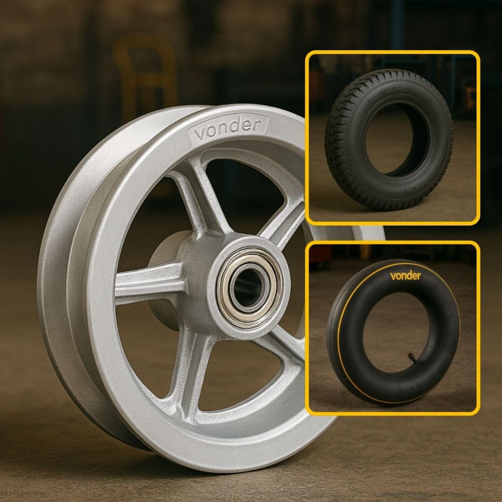 Conjunto 2 Rodas De Alumínio Aro 8'' Rolamento Pneu Camara para Carretinha