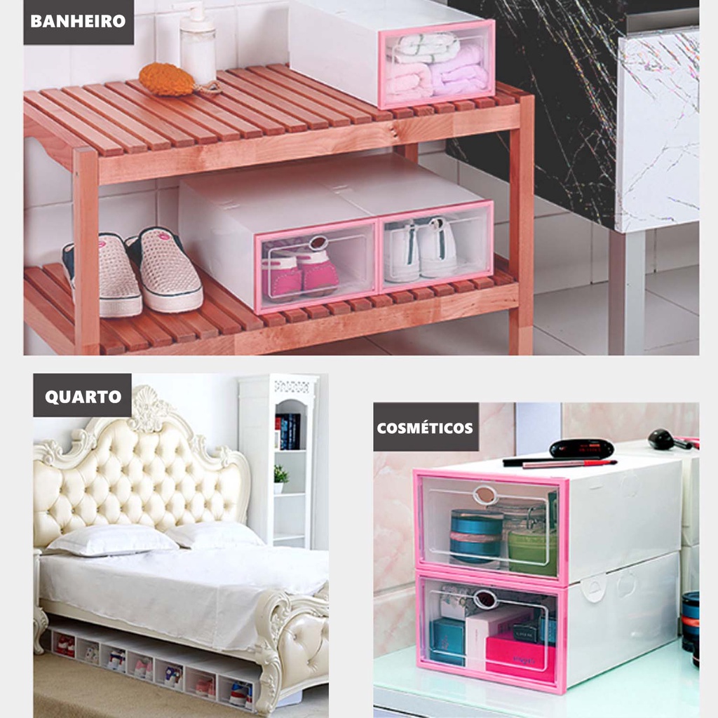 Kit Caixas Organizadoras Para Tênis Sapatos Multiuso Empilhável Tampa Flip Feminino Masculino