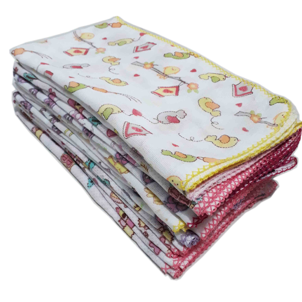 Fralda Estampada Luxo 70x70 Com Crochê Kit Com 5 Pçs