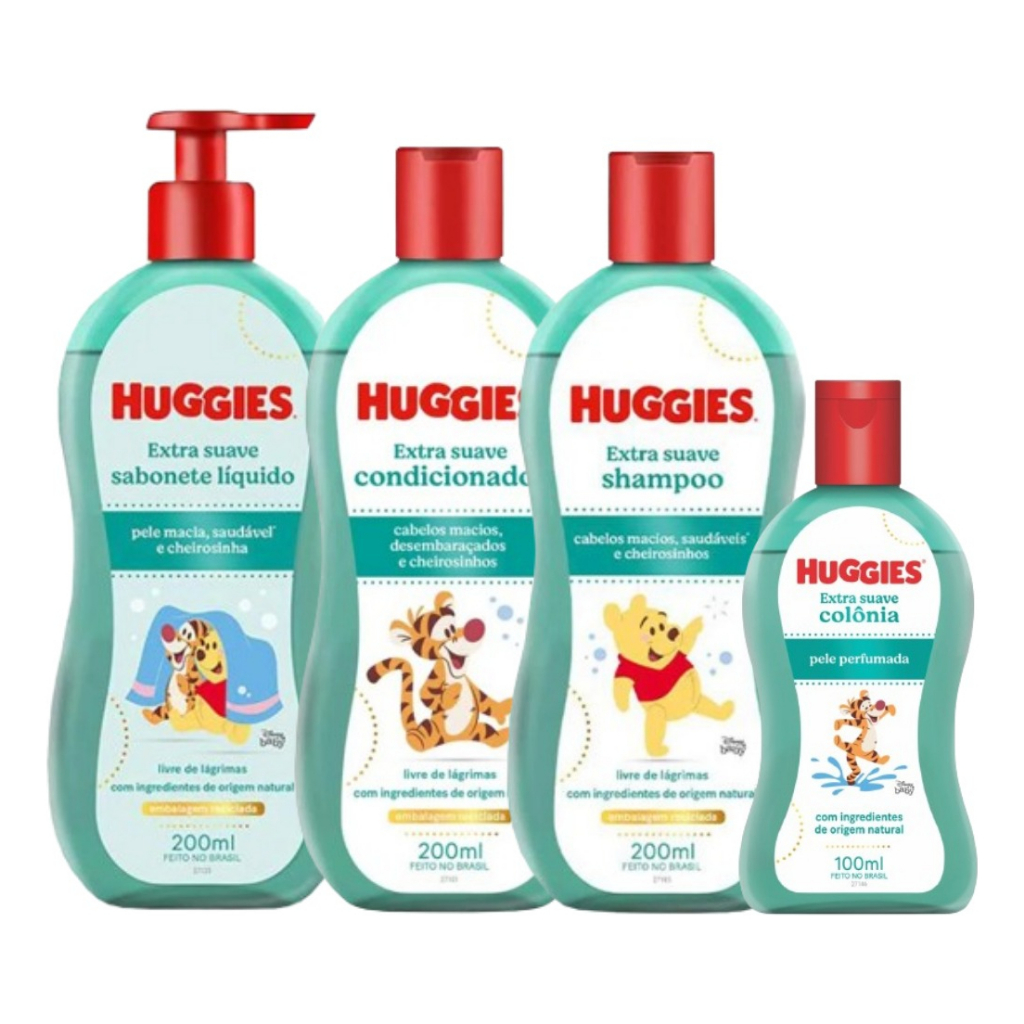 Kit Banho Huggies Infantil Camomila ou Extra Suave com Shampoo Condicionador Sabonete Colonia 200ML