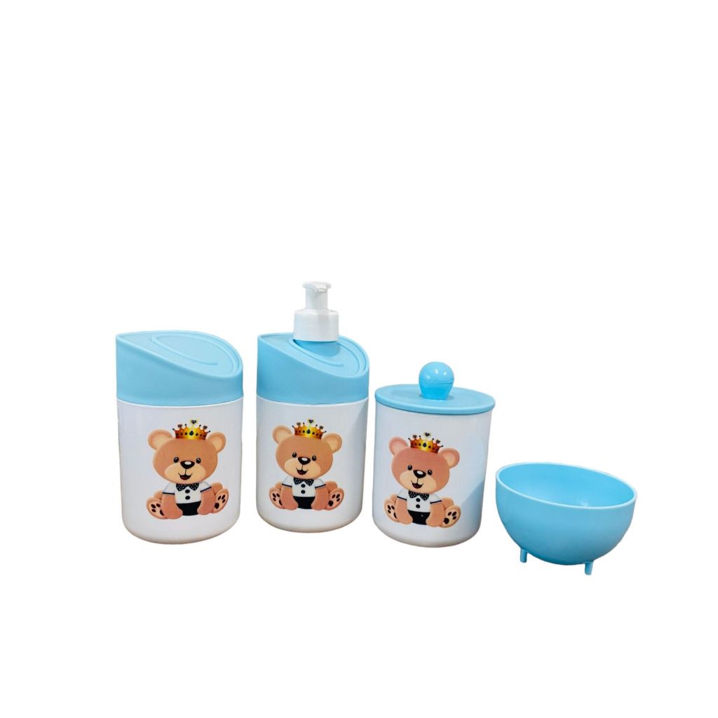 Kit Higiene Bebê Ursinho Príncipe c/bandeja quadrada azul