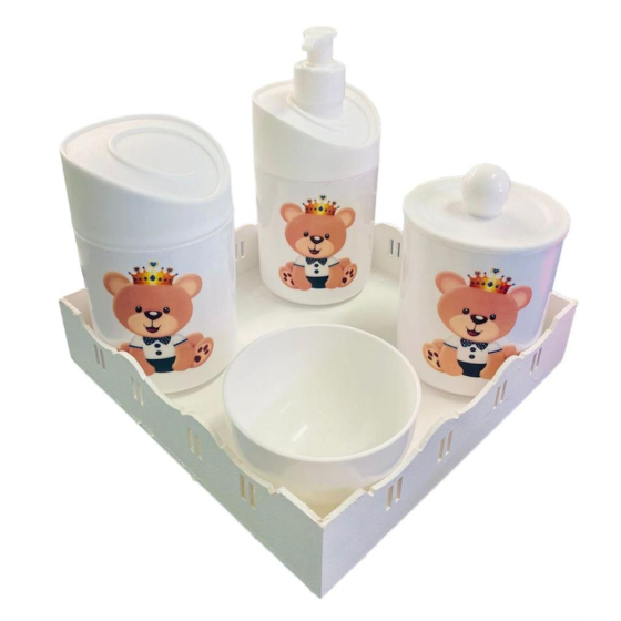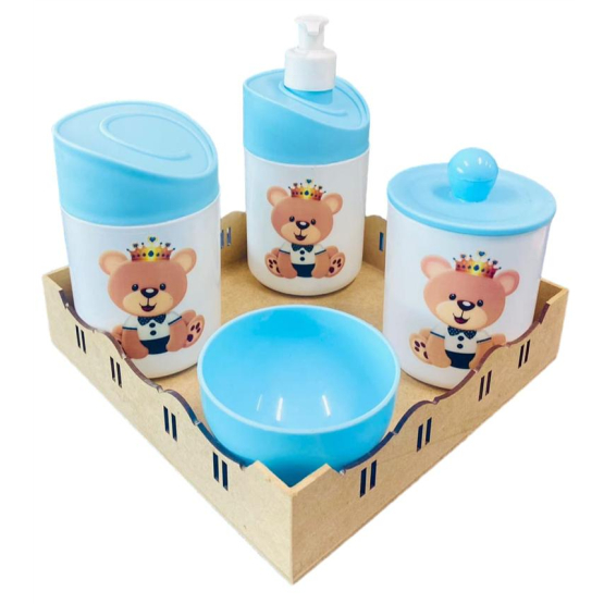 Kit Higiene Bebê Ursinho Príncipe c/Bandeja Quadrada