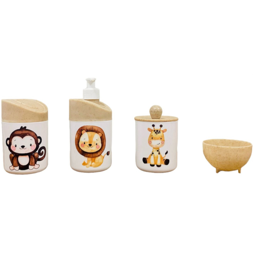Kit Higiene Bebê Safari c/ Bandeja Quadrada Crua em MDF