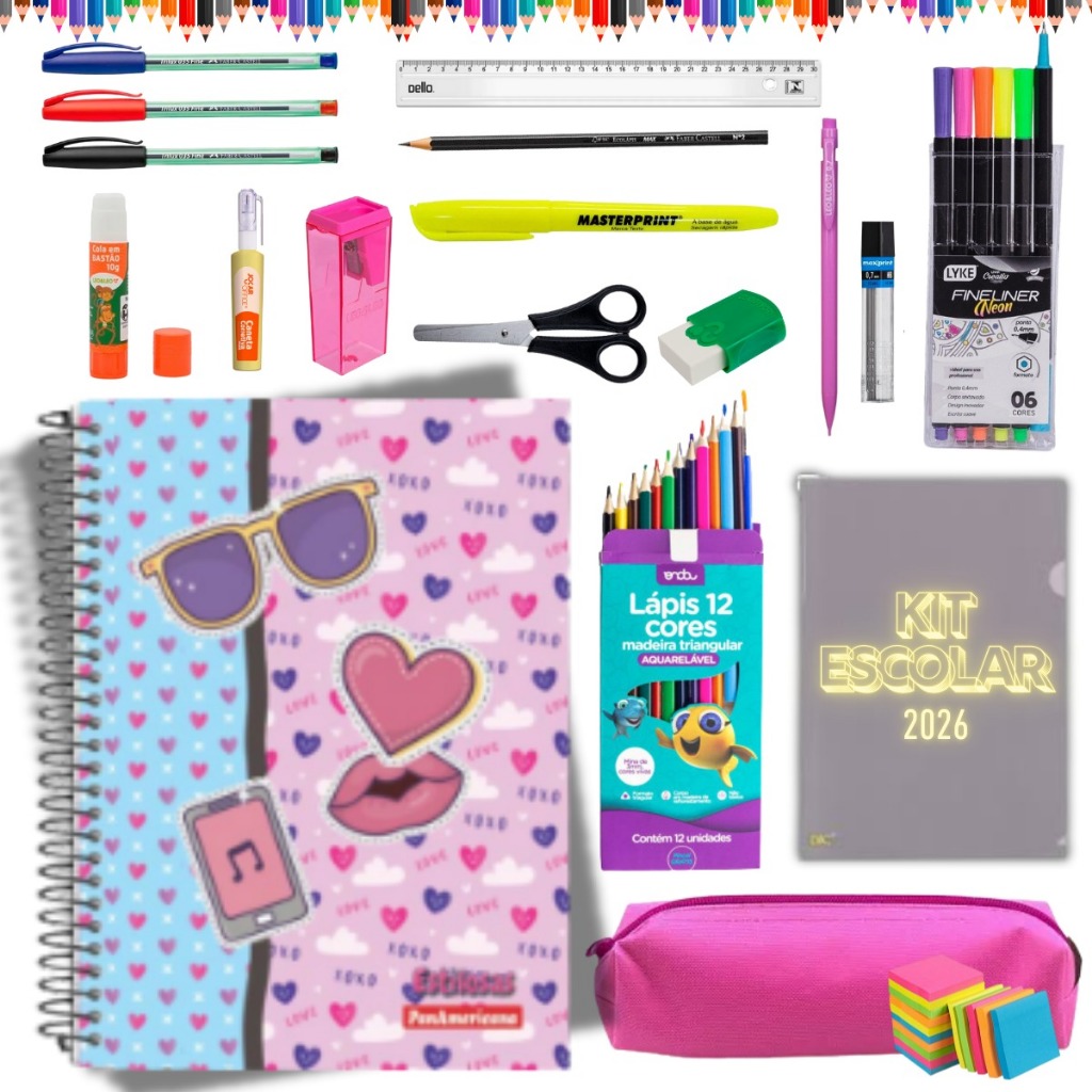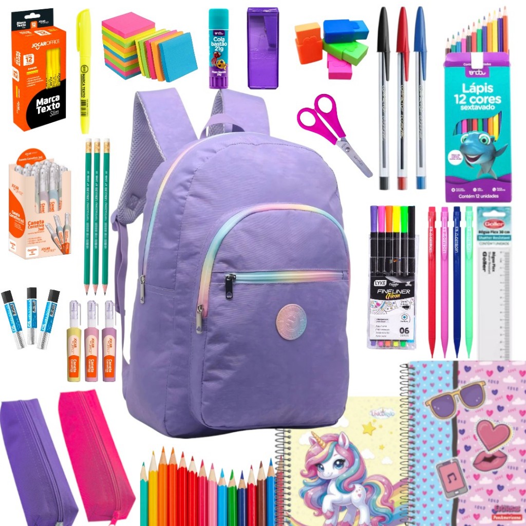 Kit Material Escolar Menina Completo Mochila Feminina Escolar Material Estojo Escolar Feminino