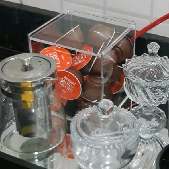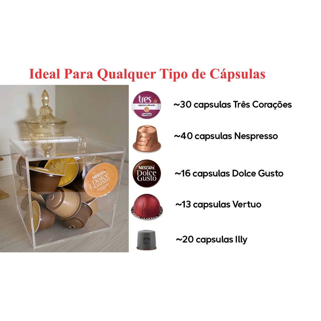 Caixa Cubo Acrílico Premium porta Cápsulas Nespresso /Dolce/Três/Diversas 13x13x13cm Café
