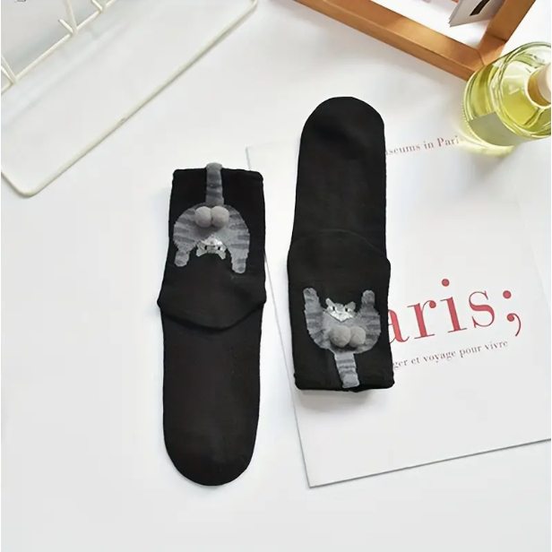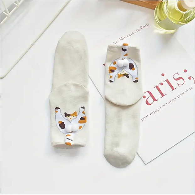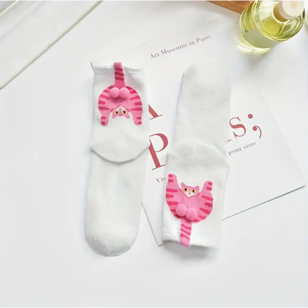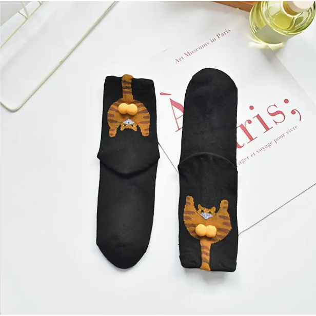 Meia de gato de desenho animado, bolas de gato, meia em algodão - 1 Par de meia