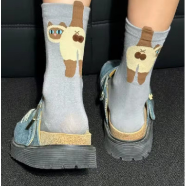 Meia de Cachorro e Gato de desenho animado, bolas de cachorro, meia em algodão - 1 Par de meia