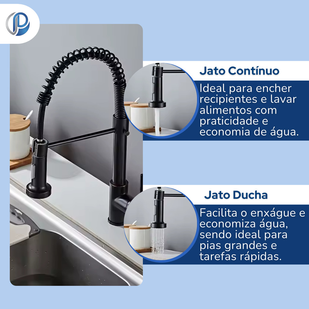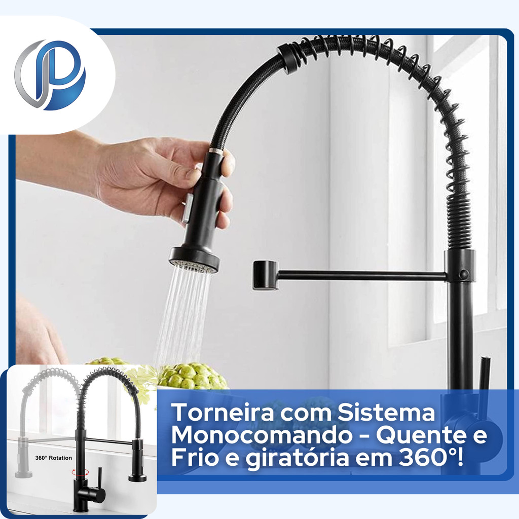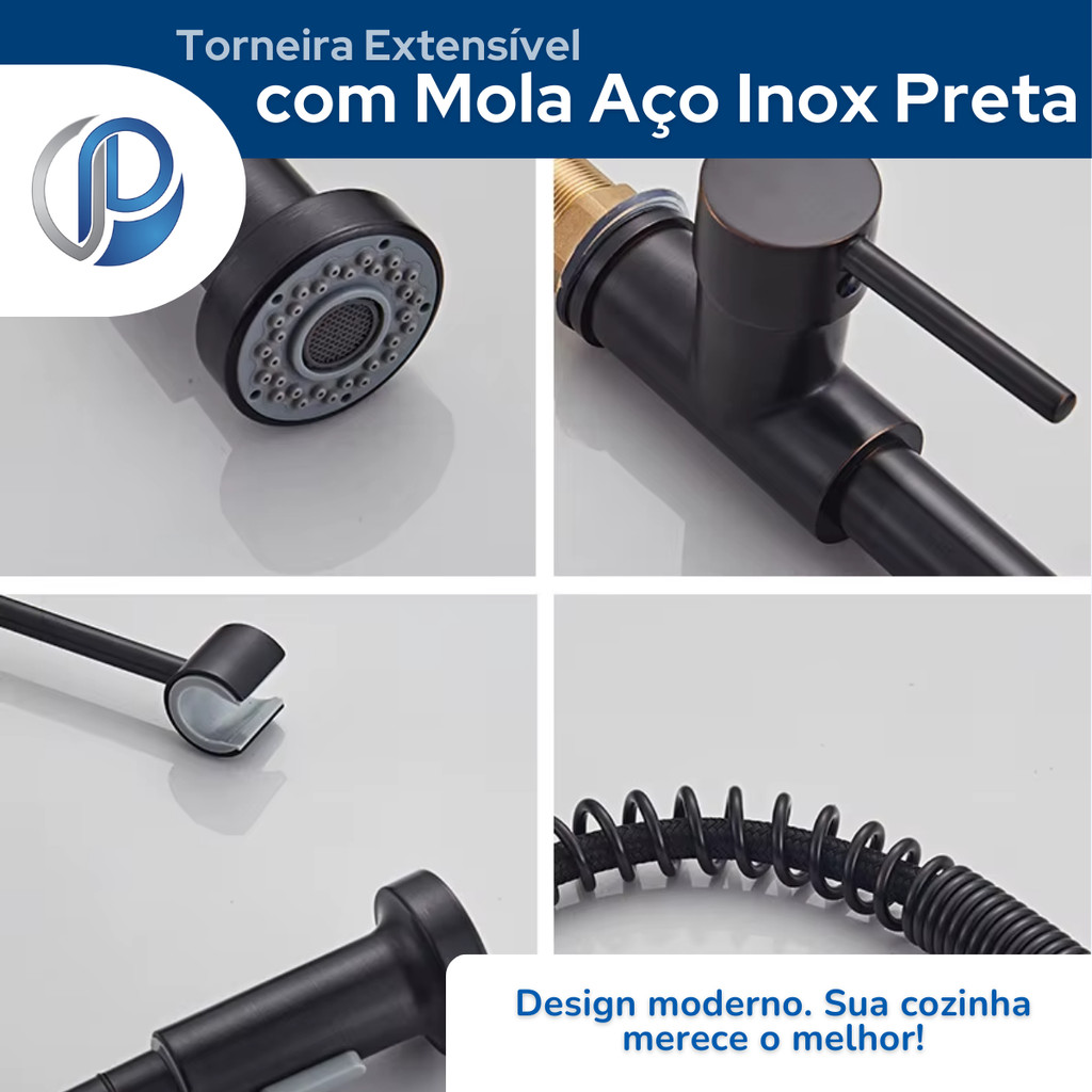 Torneira Extensível com Mola Aço Inox Preta