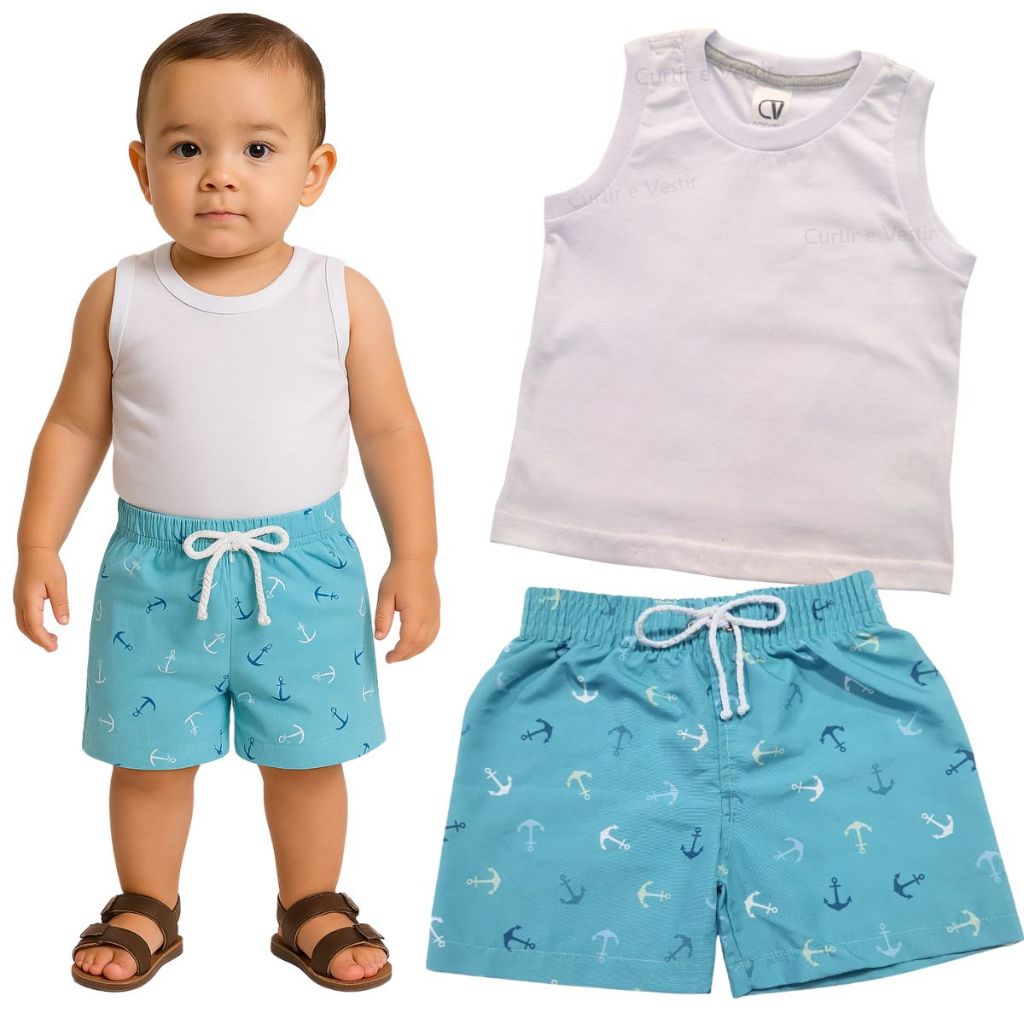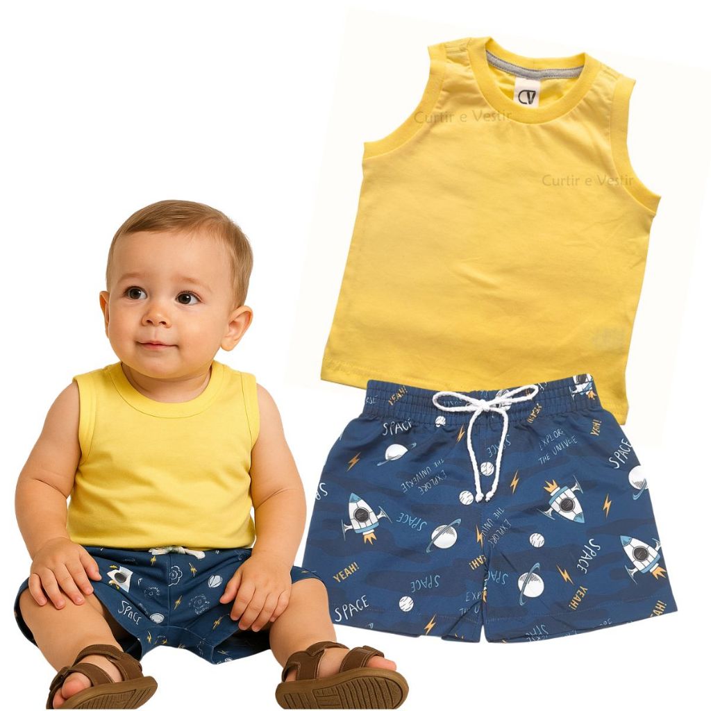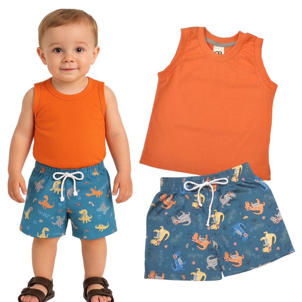Roupa Bebê Masculina – Kit 3 Bermudas + 3 Regatas Confortáveis!