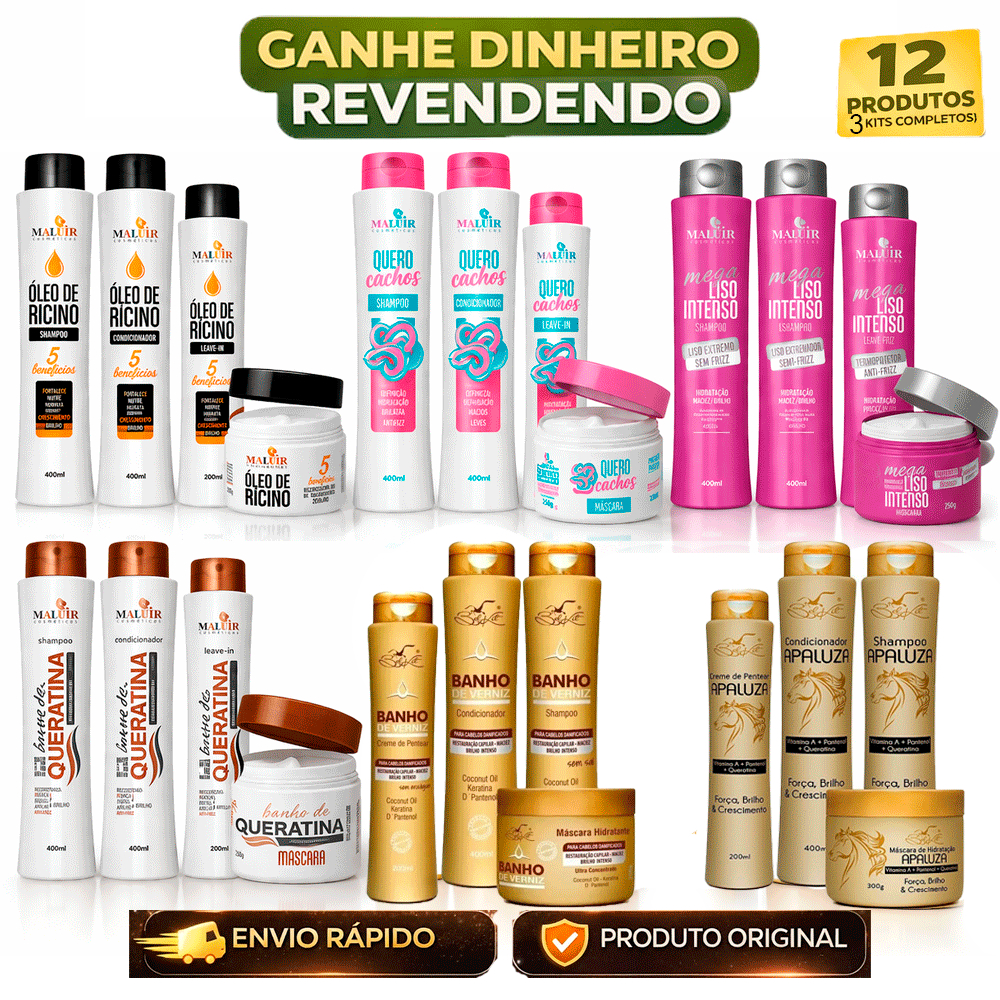 Kit 12 Produtos = Shampoo + Condicionador + Máscara + Creme Pentear | Belkit Mahair