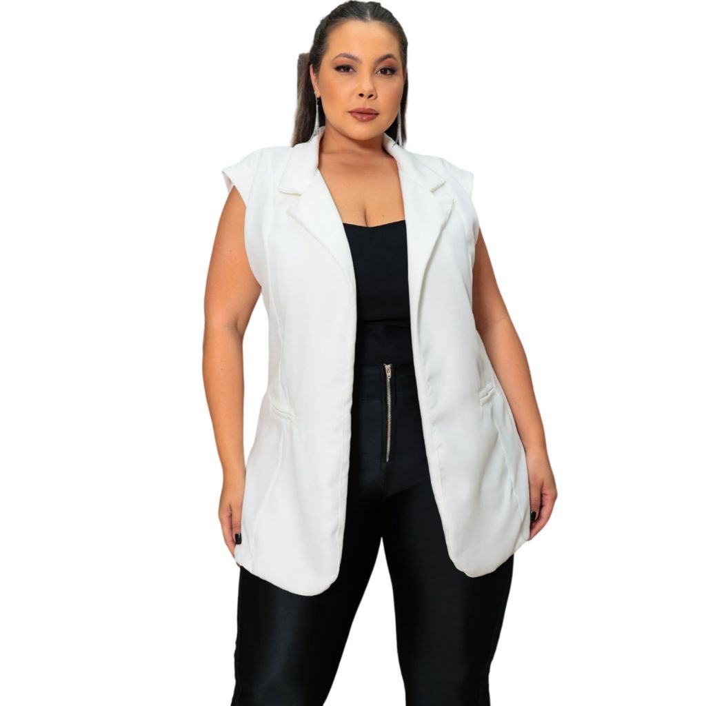 Colete Longo Alfaiataria Plus Size Feminino Elegante Chic G2 e G3