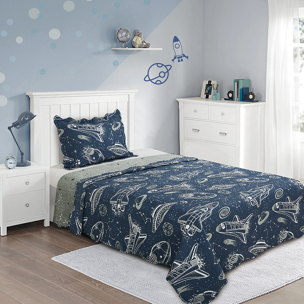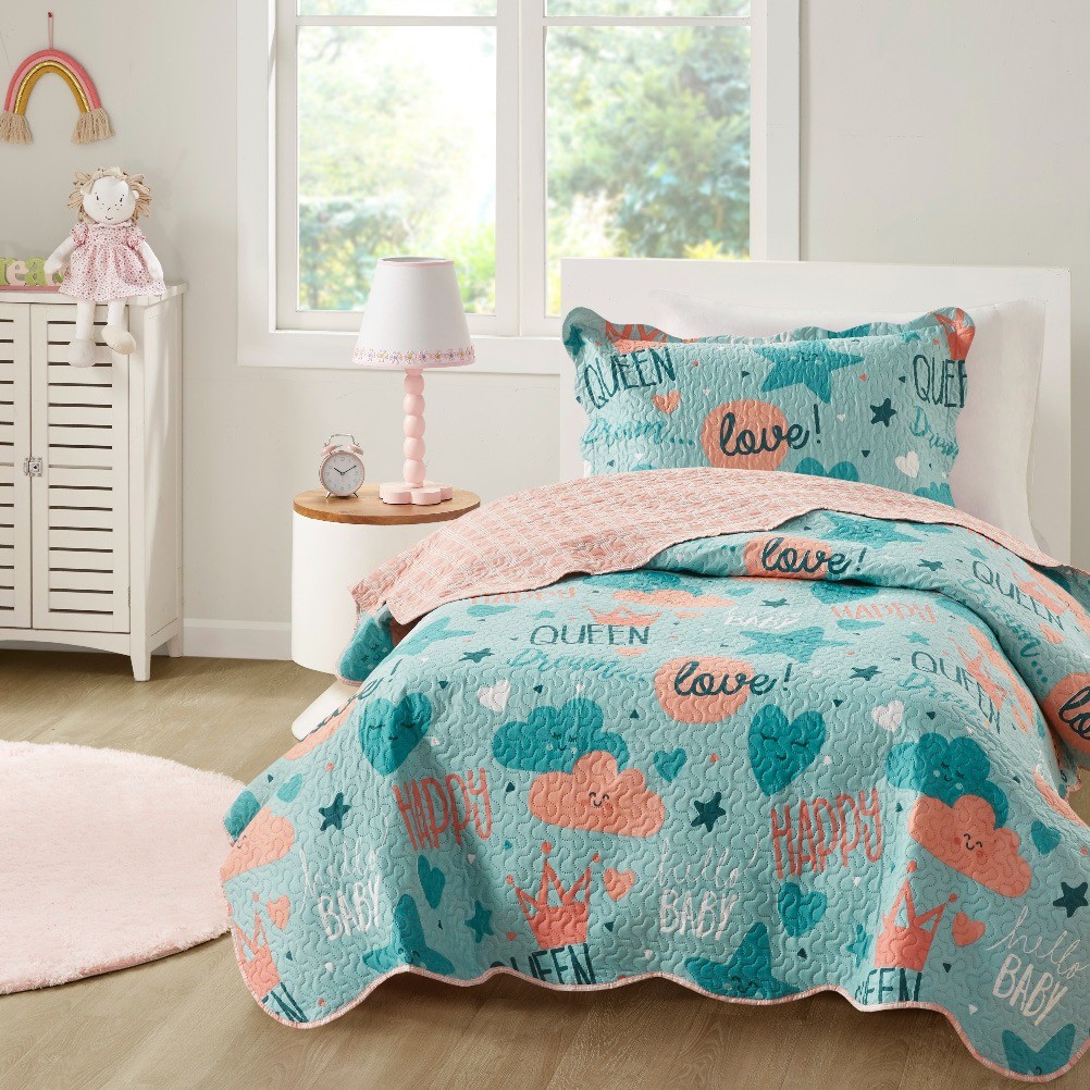 Cobre leito Colcha Solteiro Infantil Juvenil Dupla Face 1.60x2.40 com 1 Porta-Travesseiro Estampada Lisa Envio Imediato
