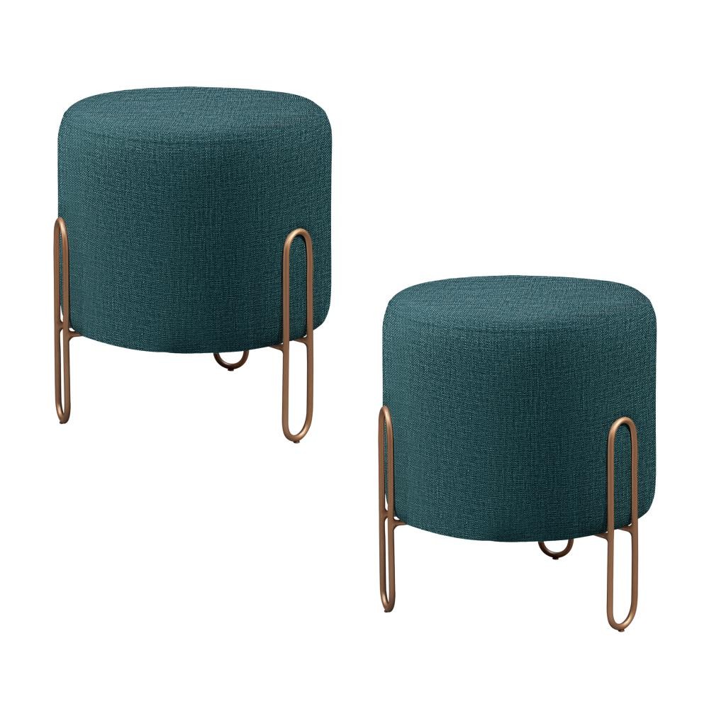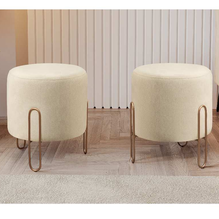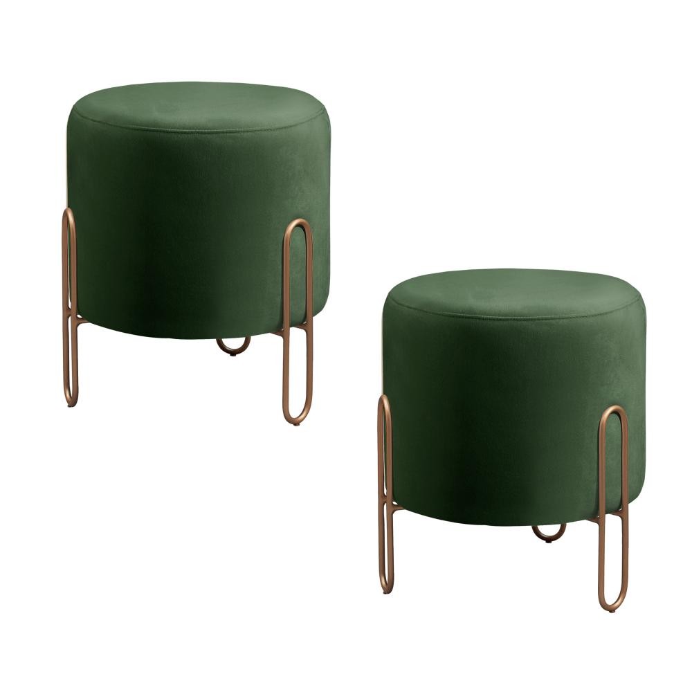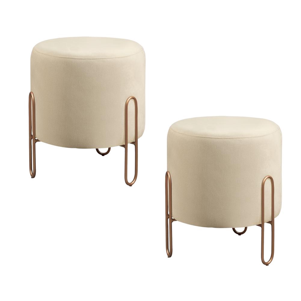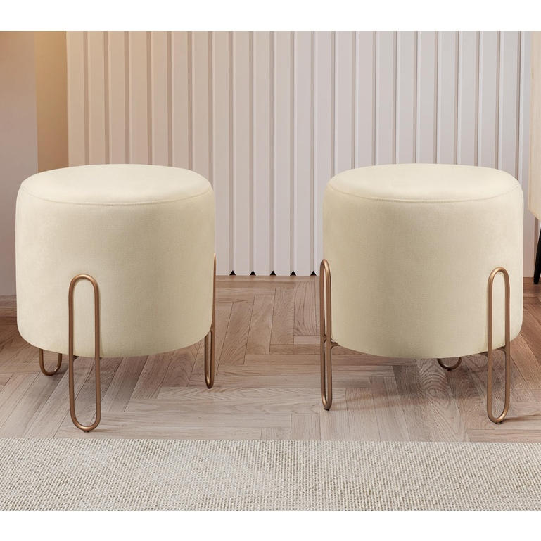 Conjunto - 2 Puffs Banqueta Mali Luxo Base Metálica Bronze