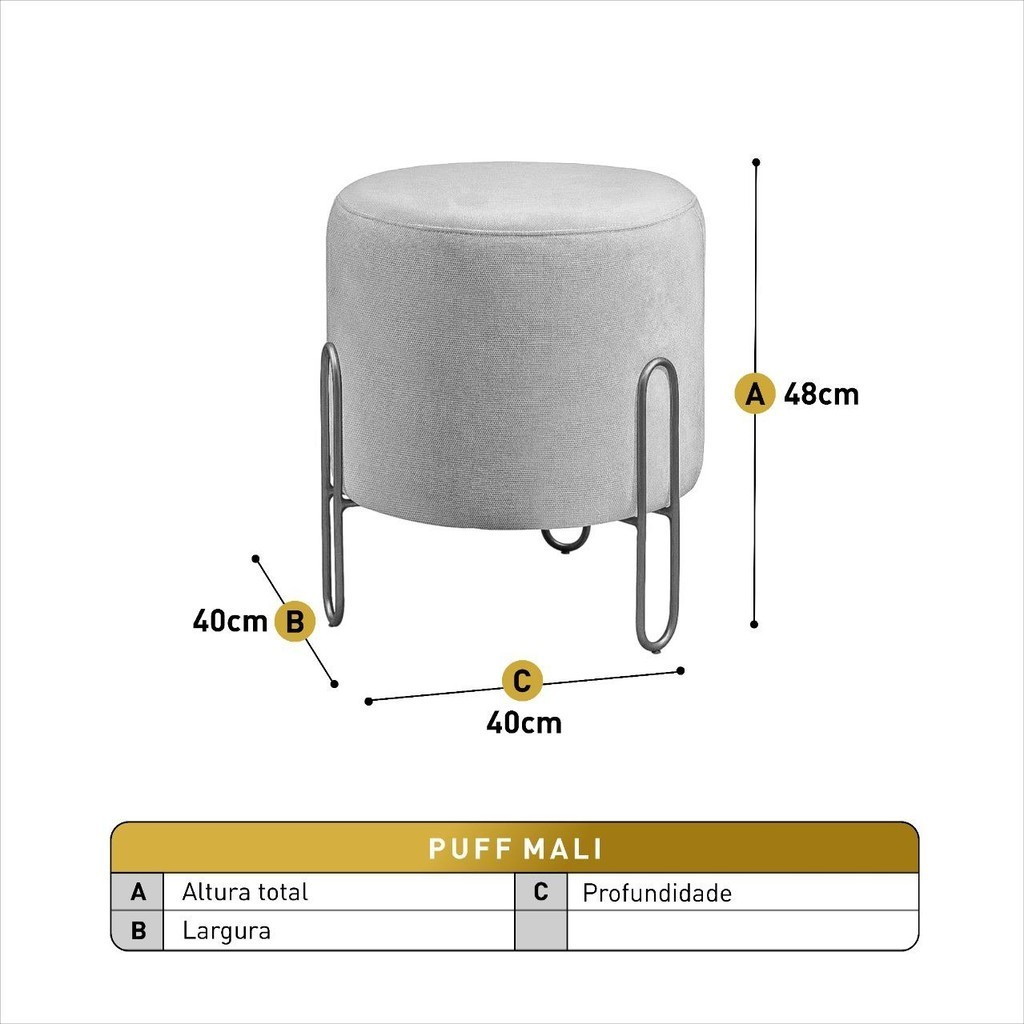Puff Banqueta Mali Luxo Base Preta Castellar Móbile