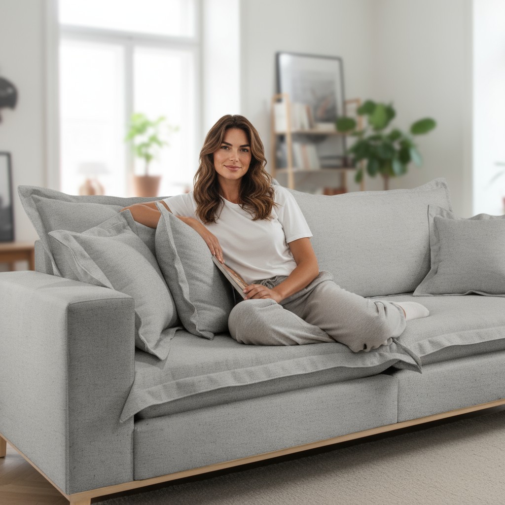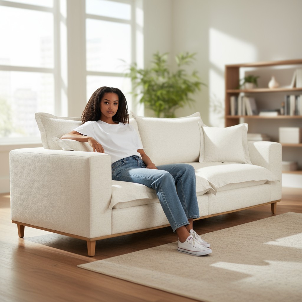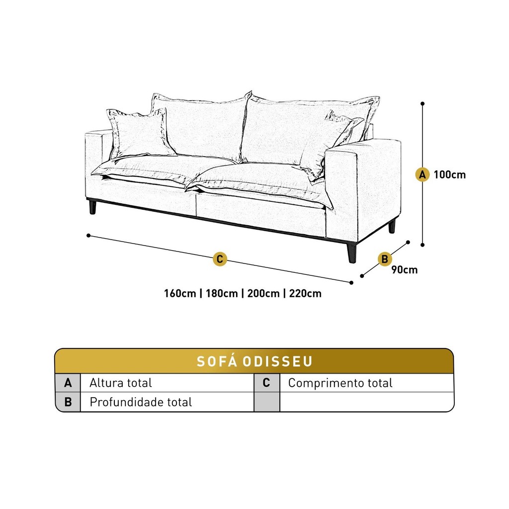 Sofá Fixo Odisseu 2,20m Luxo 3 Lugares Conforto Mola Enssacada 4 Lugares Castellar Móbile