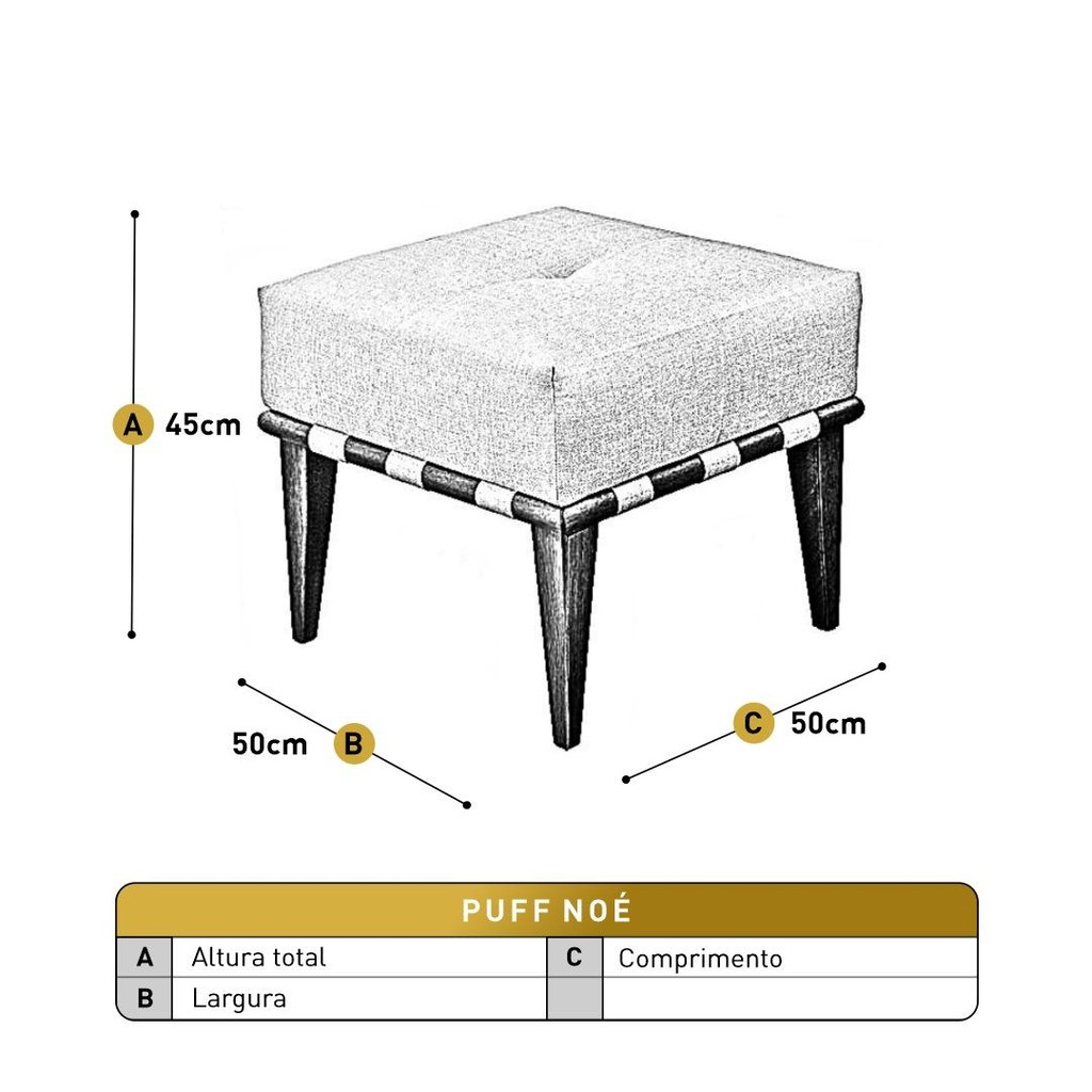 Puff Banqueta Noé Luxo Madeira Maciça Castellar Móbile