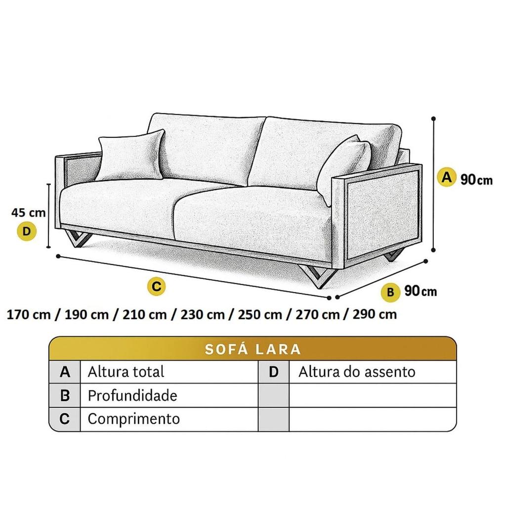 Sofá Lara Luxo 1,70m / 1,90m / 2,10m / 2,30m / 2,50m / 2,70m / 2,90m até 5 Lugares Castellar Móbile