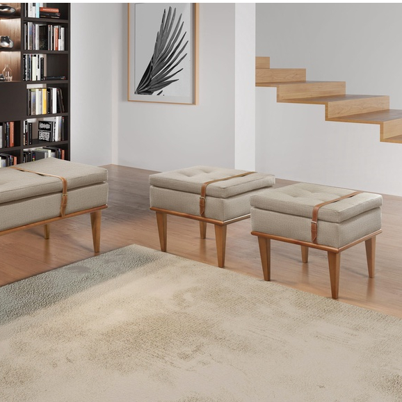 Conjunto - 2 Puffs Banqueta Londres Luxo Castellar Móbile