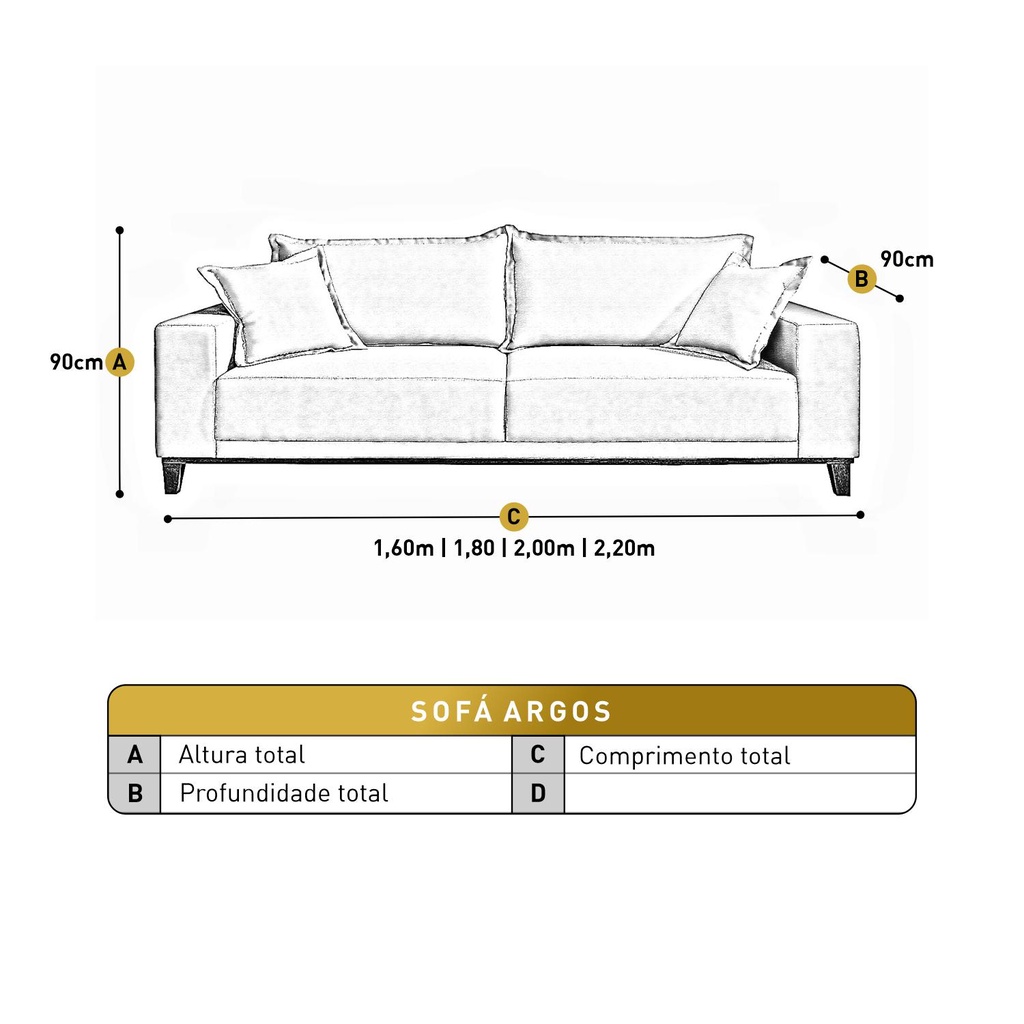 Sofá Fixo Argos 3 Lugares Luxo 2,00 M Castellar Móbile