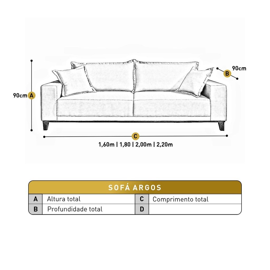 Sofá Fixo Argos 2 Lugares Luxo 1,60 M Castellar Móbile