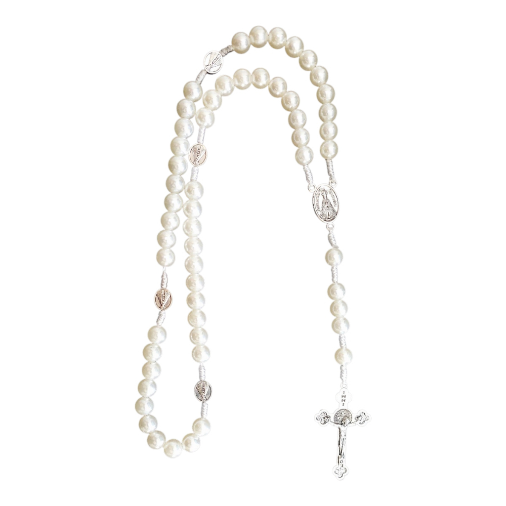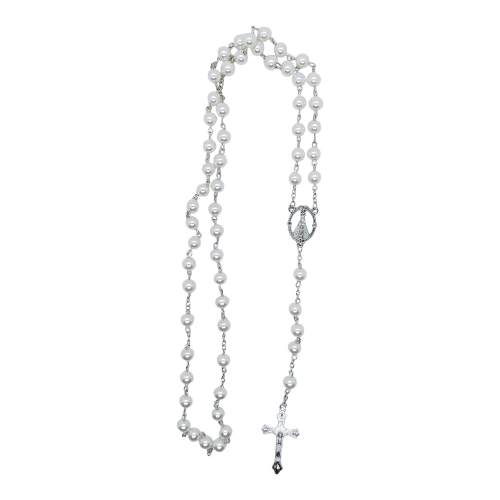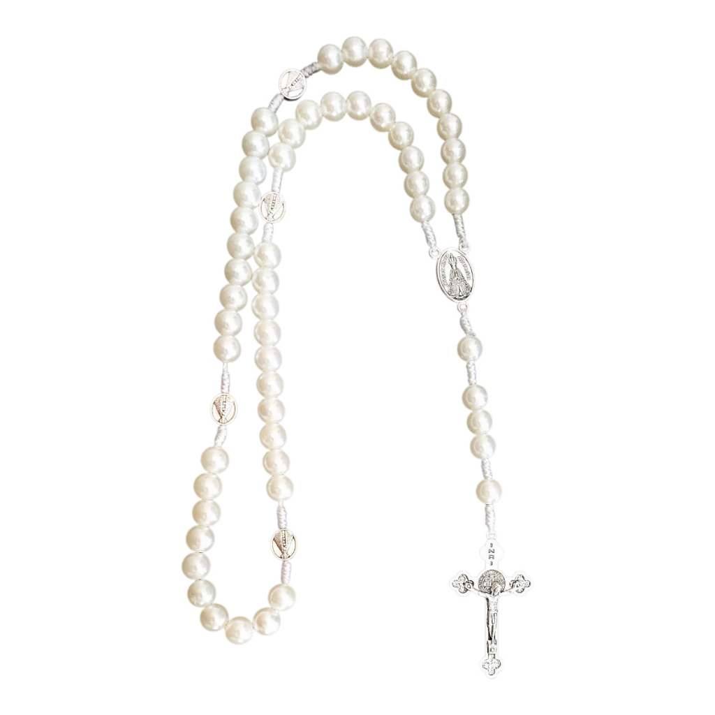colar TERÇO pescoço PÉROLA NOSSA SENHORA APARECIDA 8 MM X 42CM