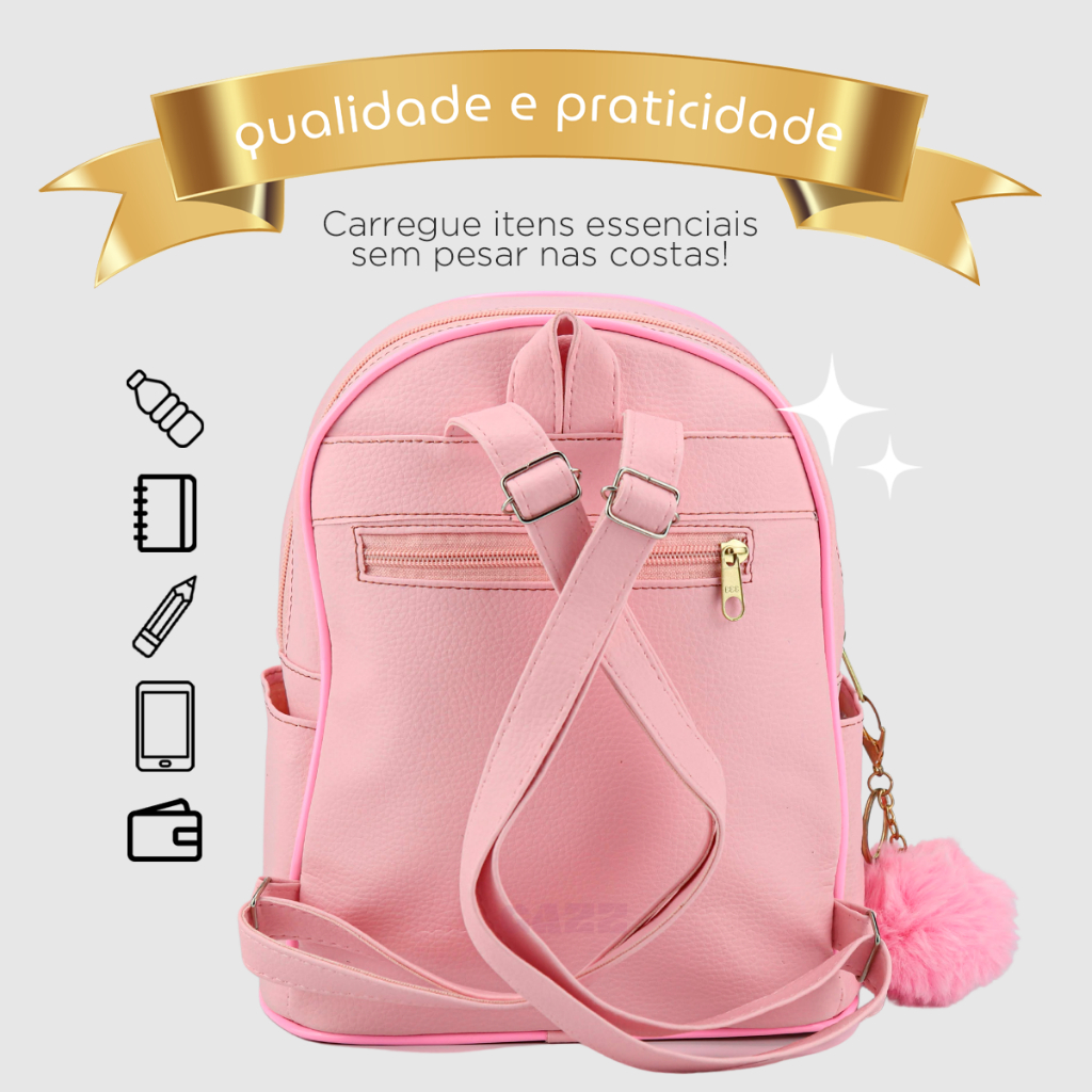 Mochila Passeio Casual Mochila Mini Bag De Costas Para Dia Dia Com Chaveiro Pompom