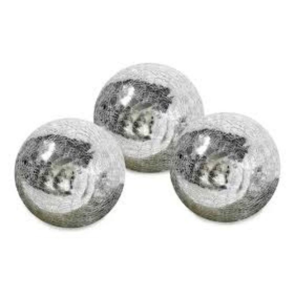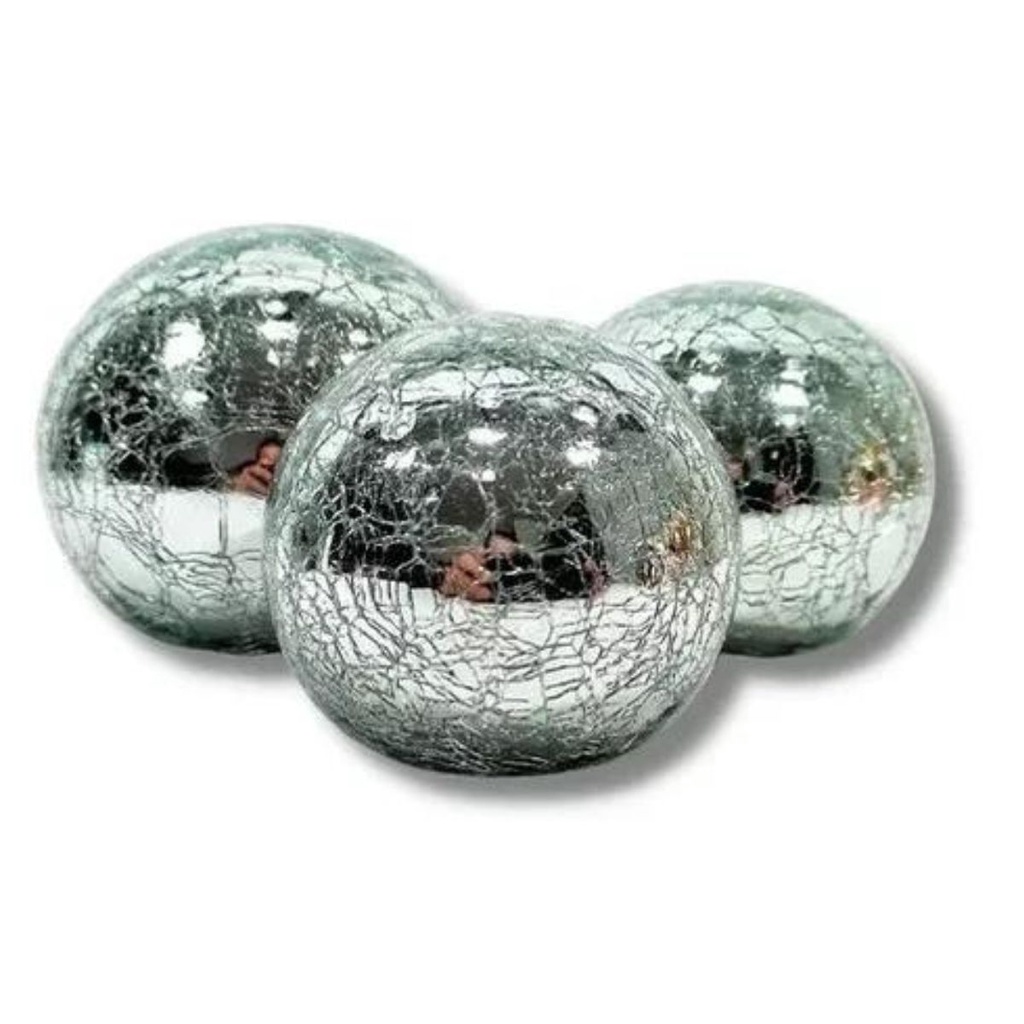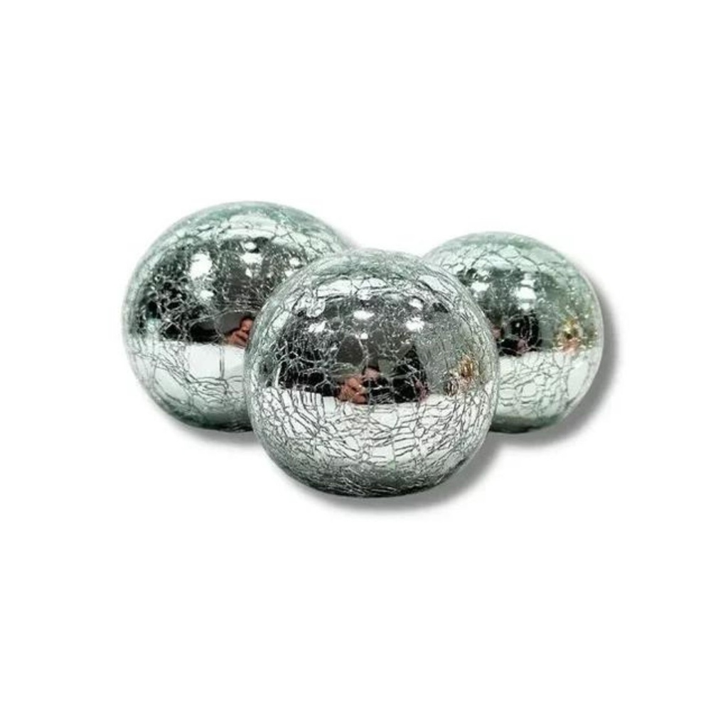 Trio Bolas Vidro Craquelado Prata