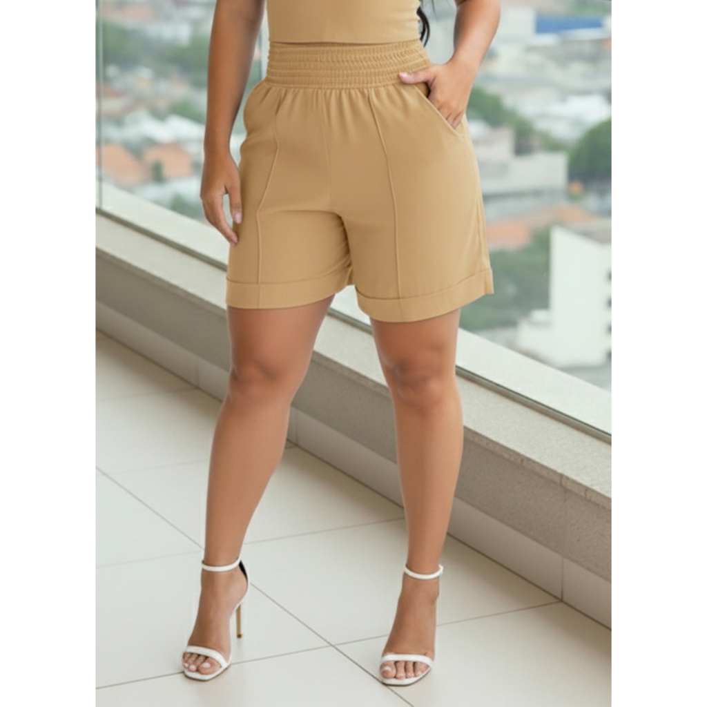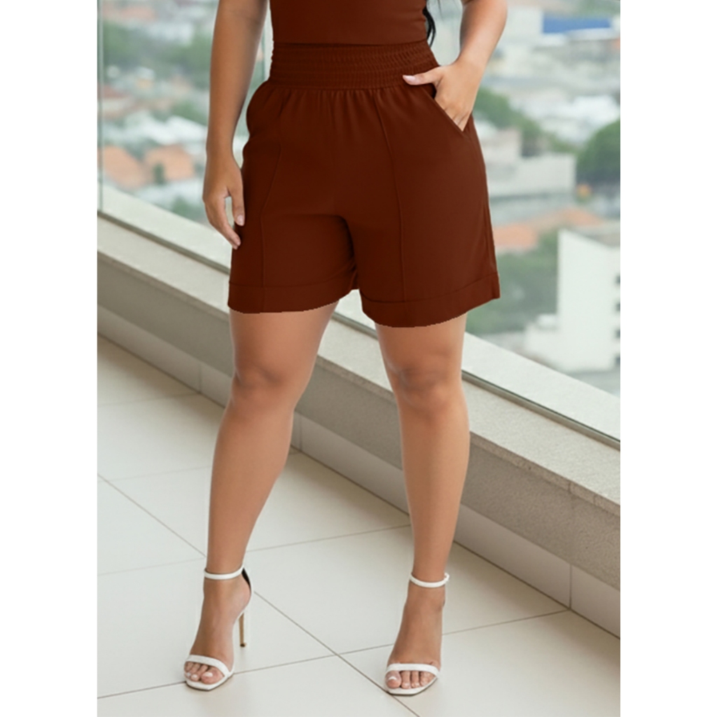 Shorts Feminino Bermudas Soltinho Cintura Alta Cós De Lastex