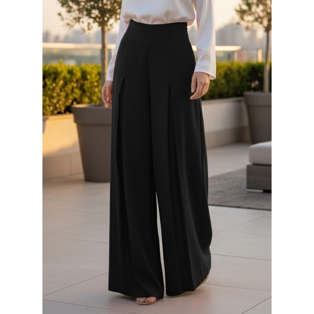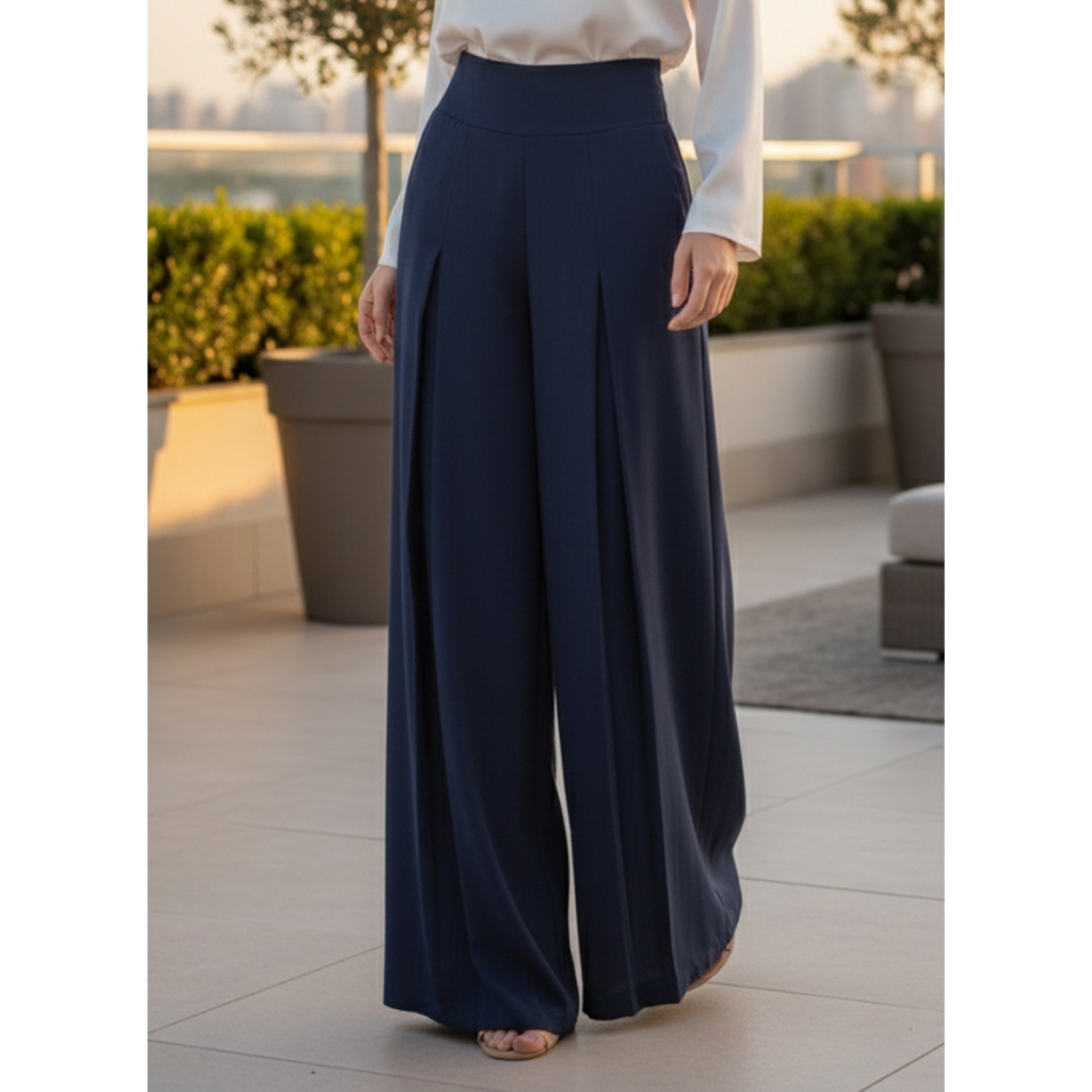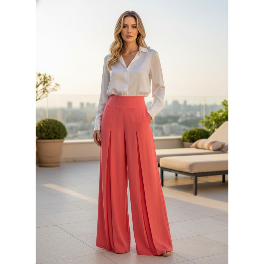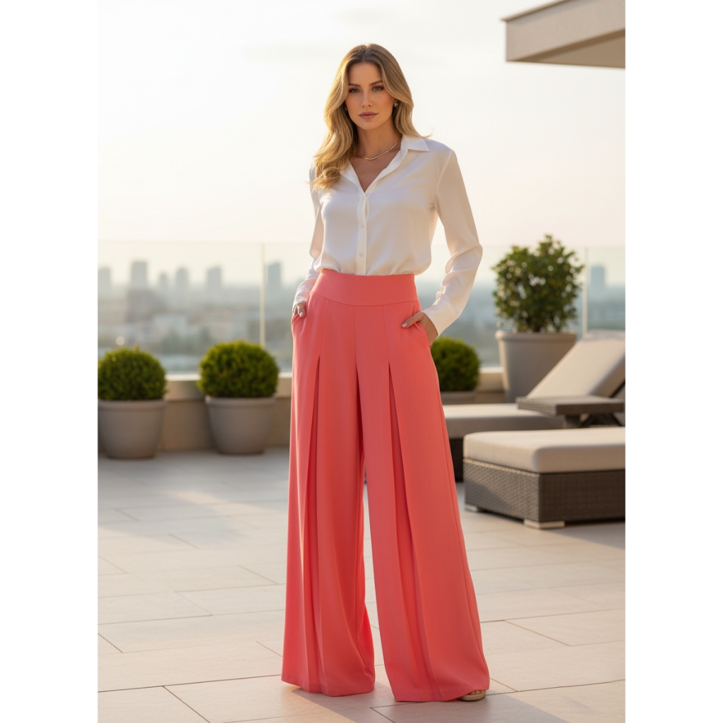 Calça Pantalona Feminina Alfaiataria com 3 Pregas Frontais Cintura Alta Wide Leg Estilo Social Elegante Soltinho