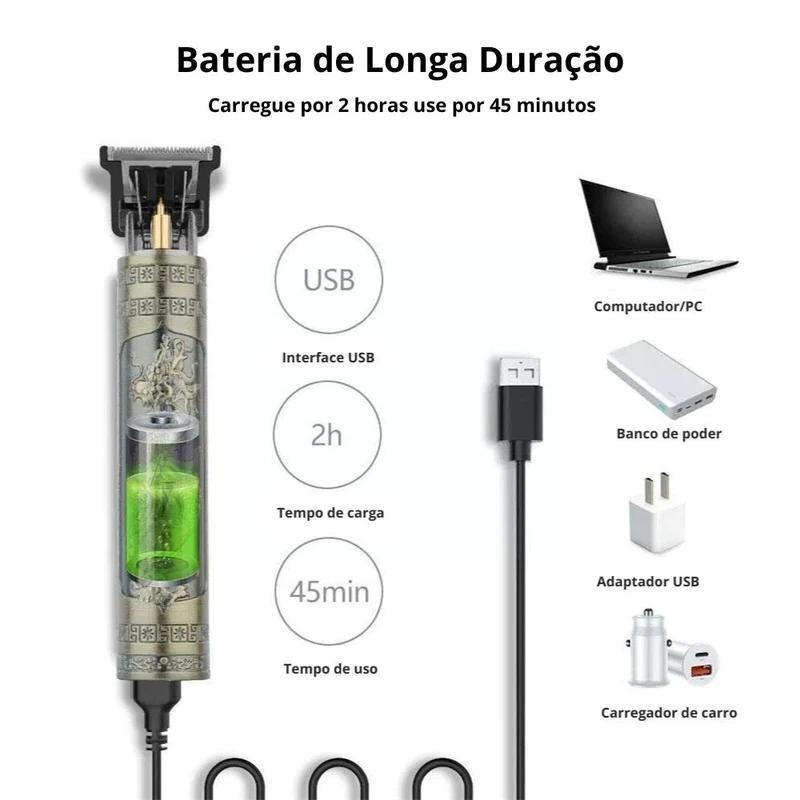 Máquina de cortar cabelo barbeiro profissional dragão elétrica bateria recarregável Sem Fio Portátil