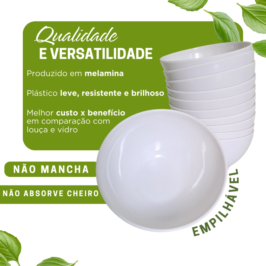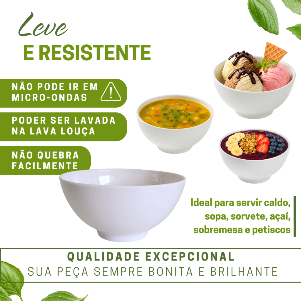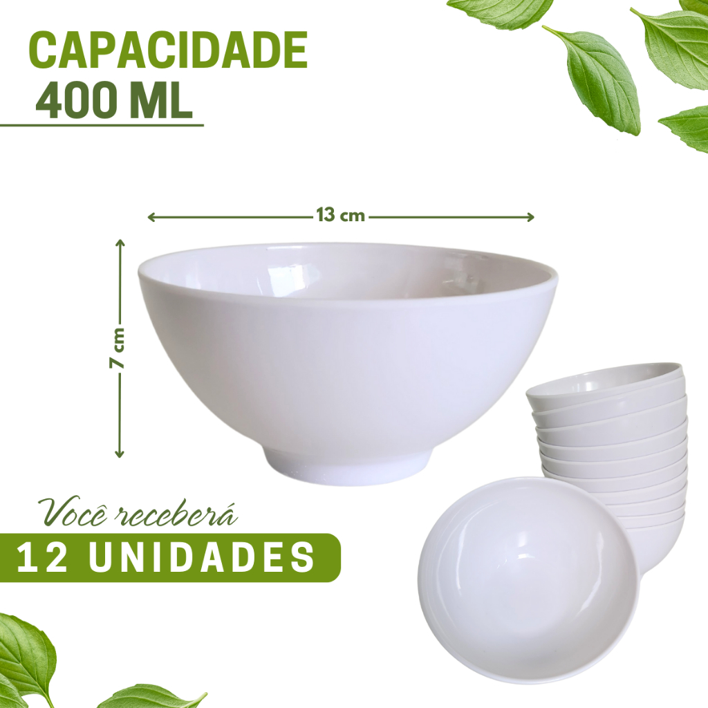 12 Tigelas Cumbuca Melamine 400ml Bolw Caldo Sopa Açaí Sorvete