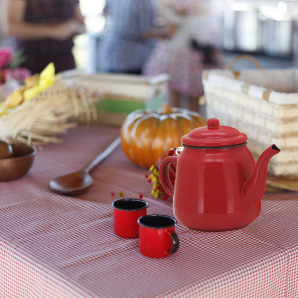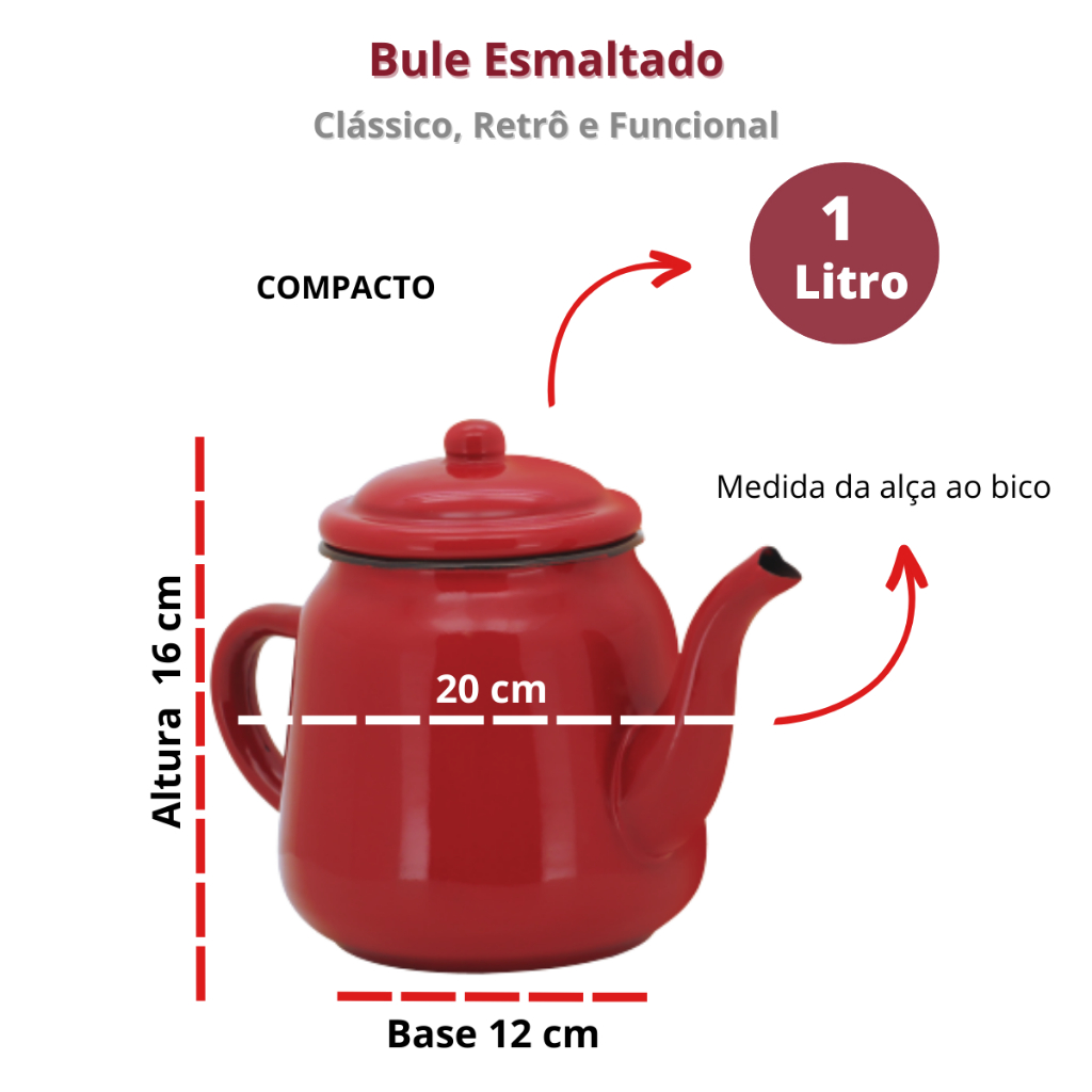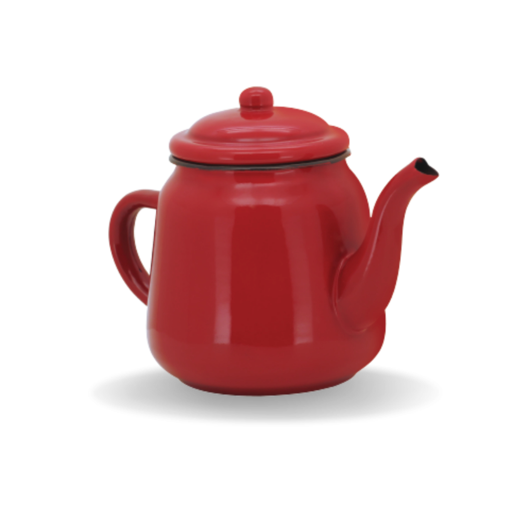 Bule 1 Litro Café Chaleira Esmaltado Vermelho Vintage Rústico