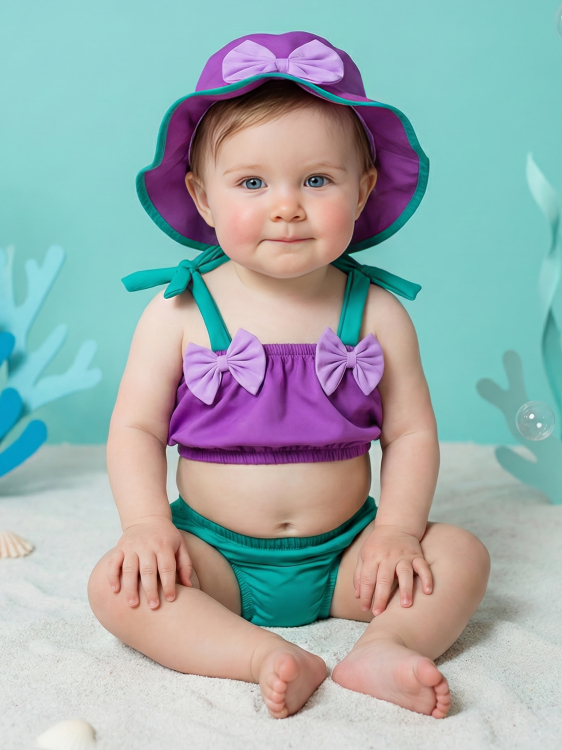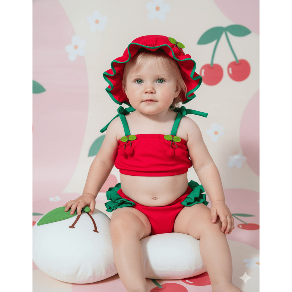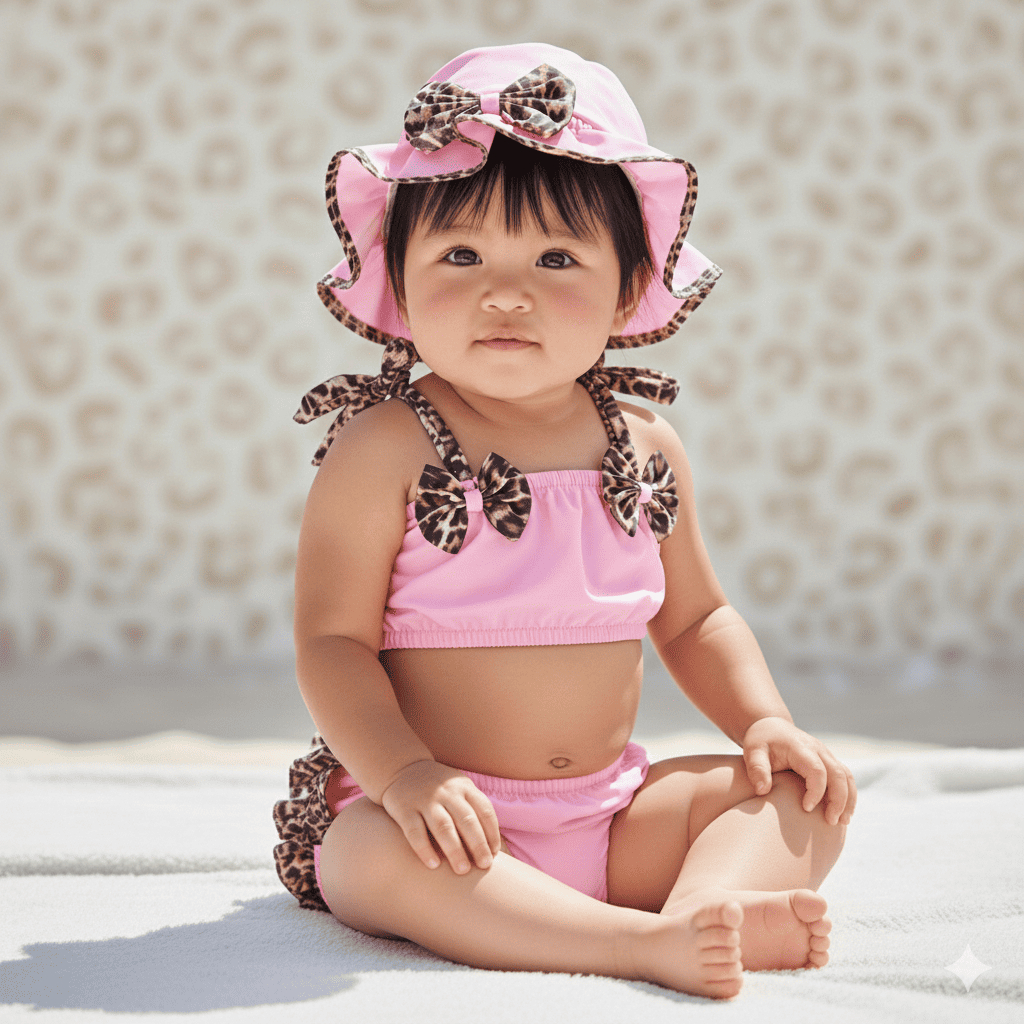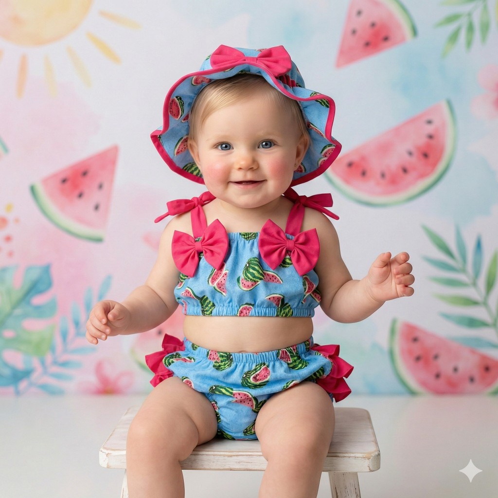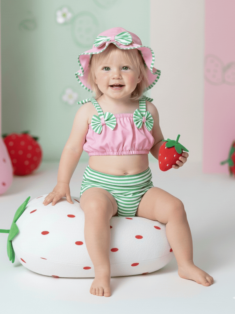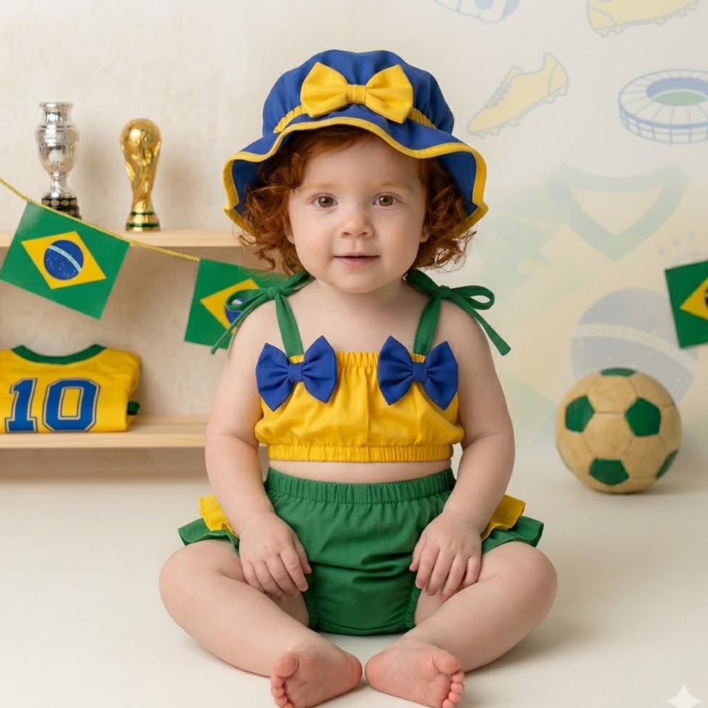 Banho De Sol Conjunto Infantil Top + Calcinha + Chapeu Baby Várias Estampas Verão Menina Bebê Praia