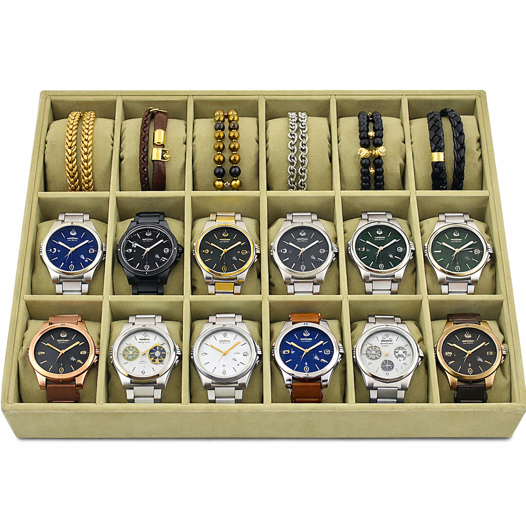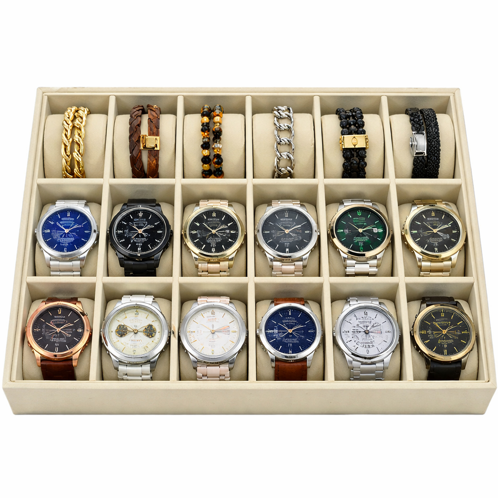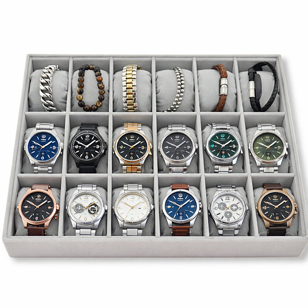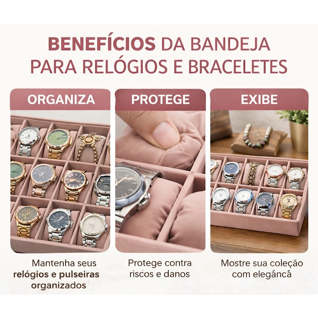 Bandeja Para 18 Relógios ou Bracelete Porta Relógio Com 18 Almofadas em Veludo