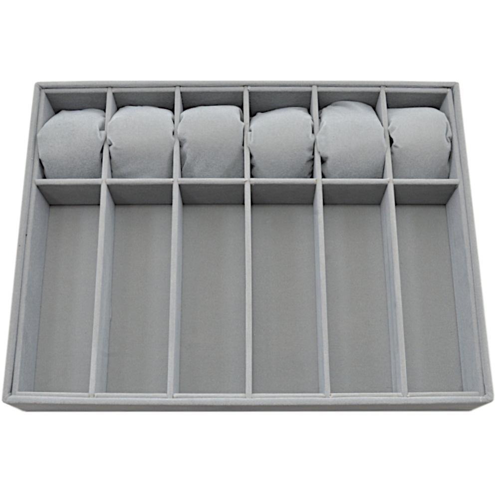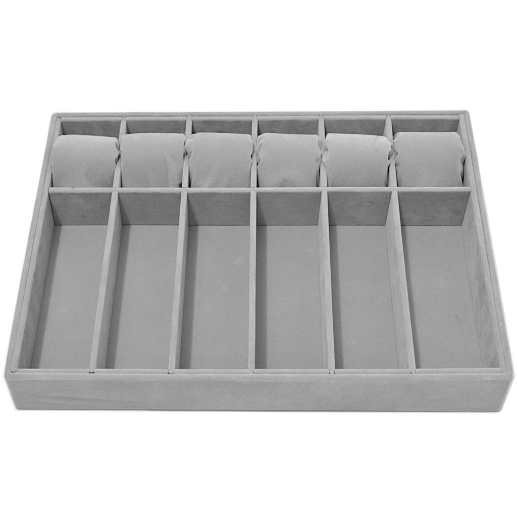 Bandeja organizadora Para 6 Relógios E 6 Óculos Acompanha 06 Almofadas em veludo na cor Cinza