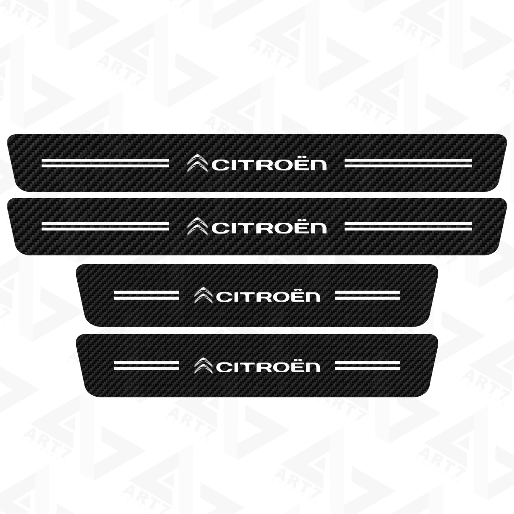 Kit 4 Peças Adesivo Vinil Soleira de Porta Carro Modelo Compatível Citroen Proteção Fibra de Carbono